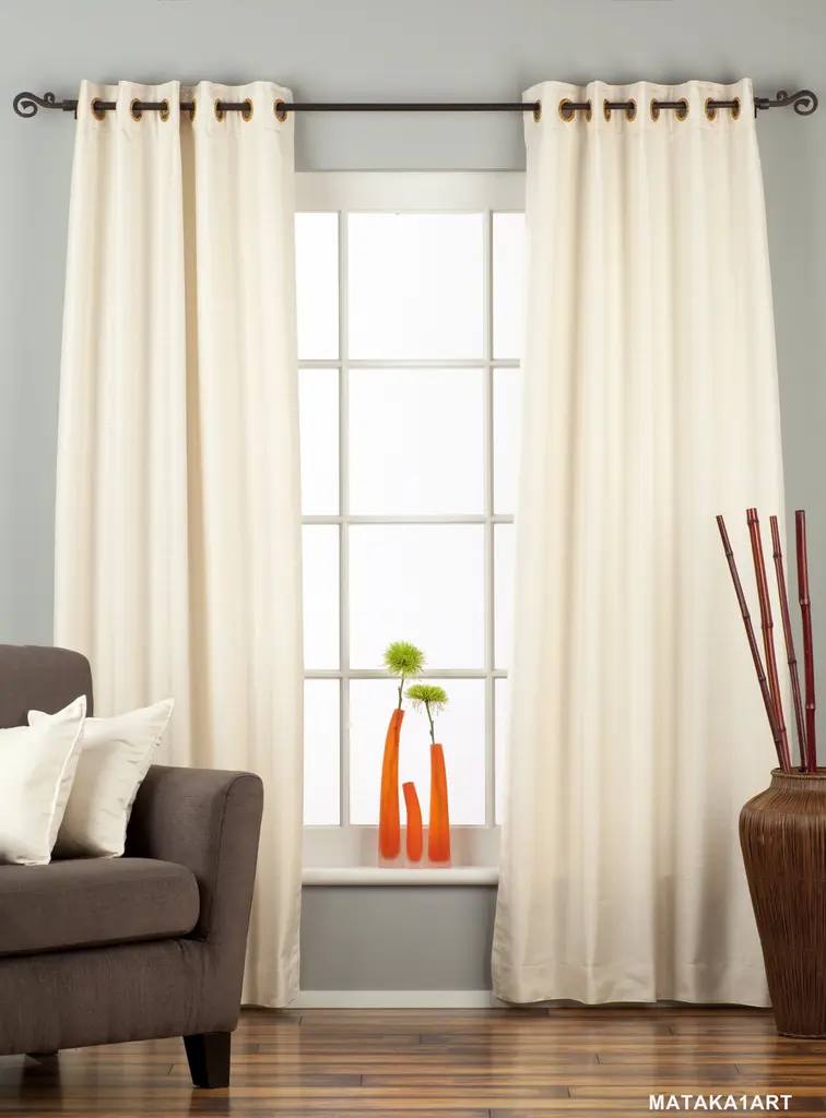 Cream Ring Top Matka Raw Silk Curtain / Drape / Panel - Piece