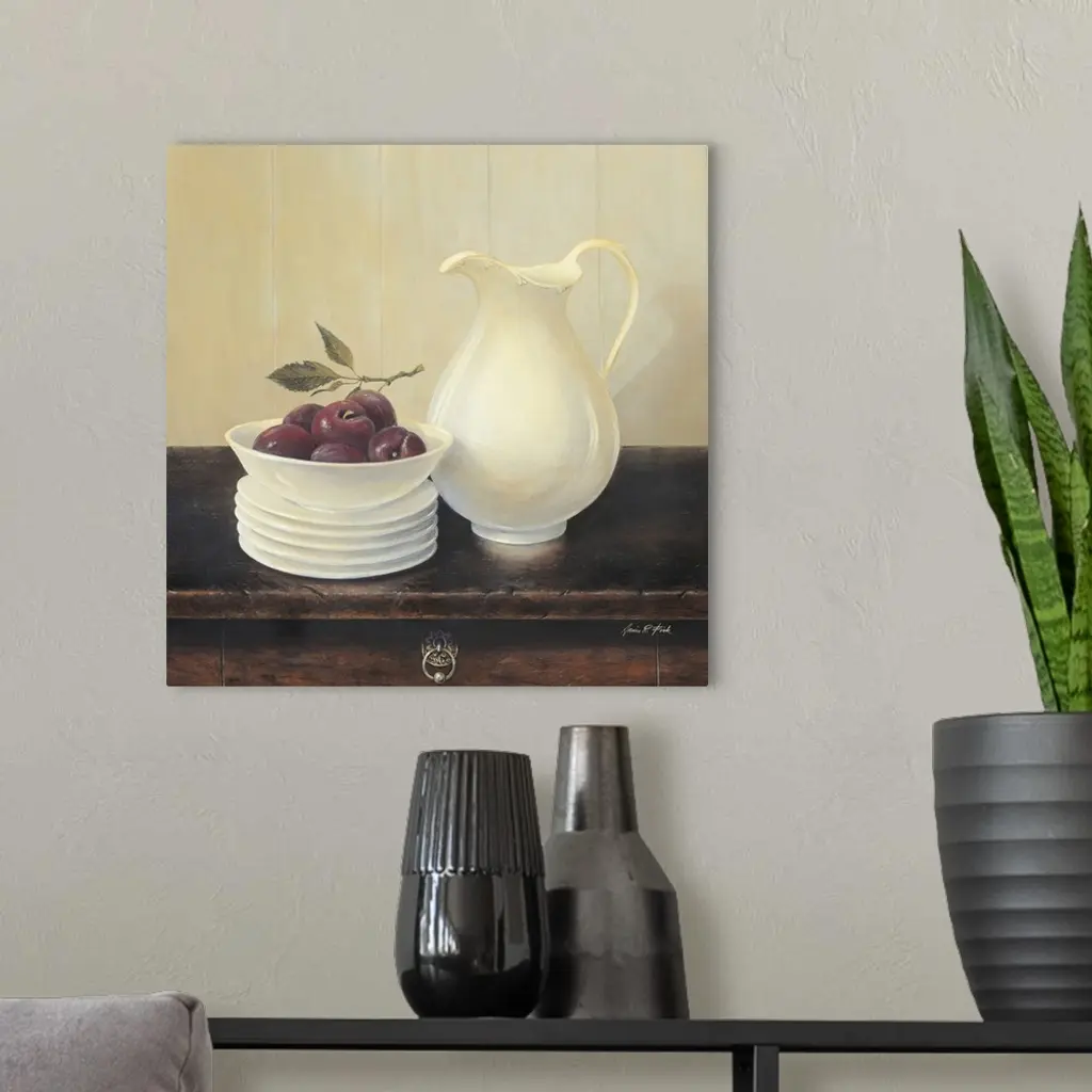 Creamware with Plums wall art for home and office decor. Discover canvas art prints, photos, mural, big canvas art and framed wall art in GreatBigCanvas.com's varied collections.