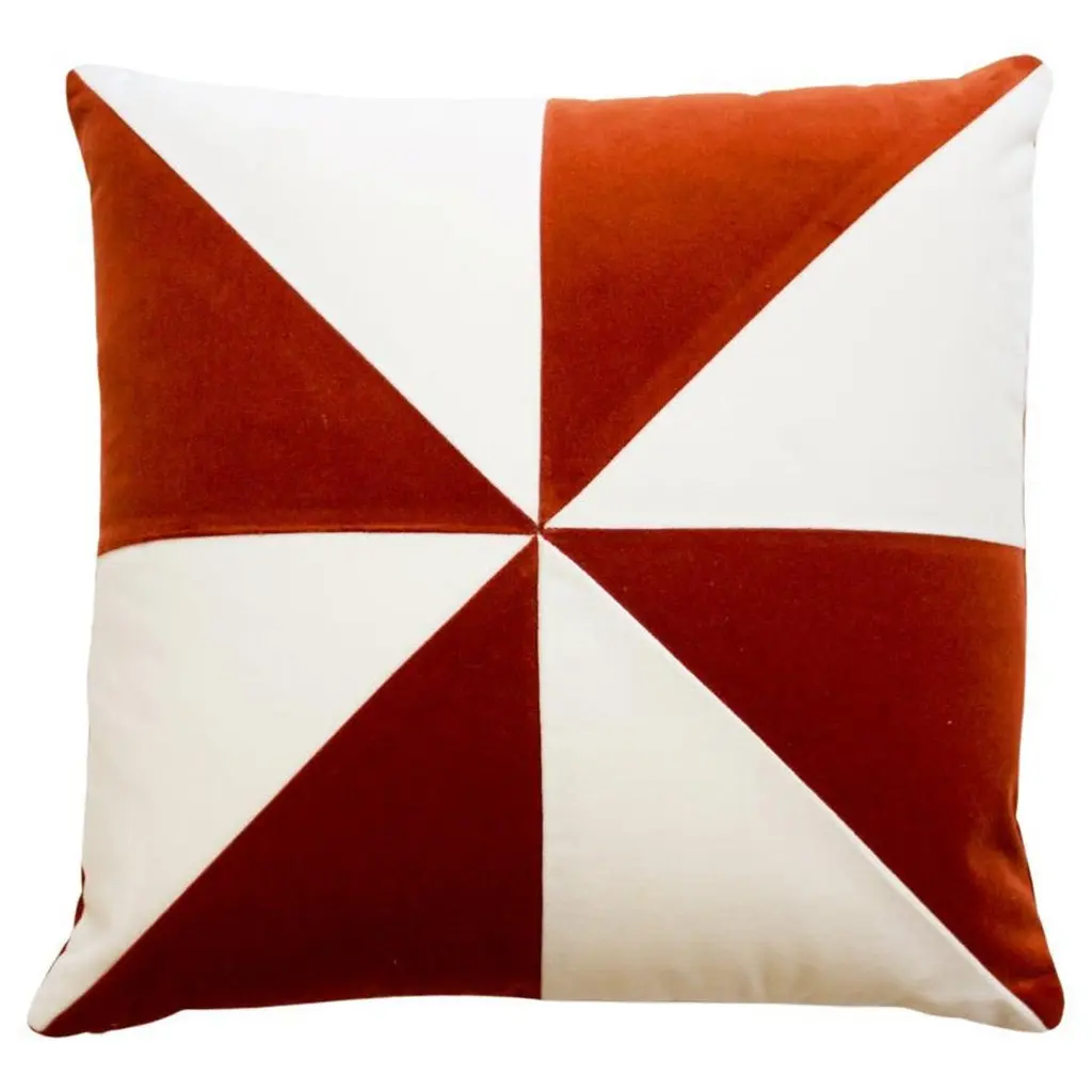 Creamy burgundy geometric form cushion is closed by zip. The silk tafetta blend cushion has a shiny touch. The cushion comes with its inner cushion pad