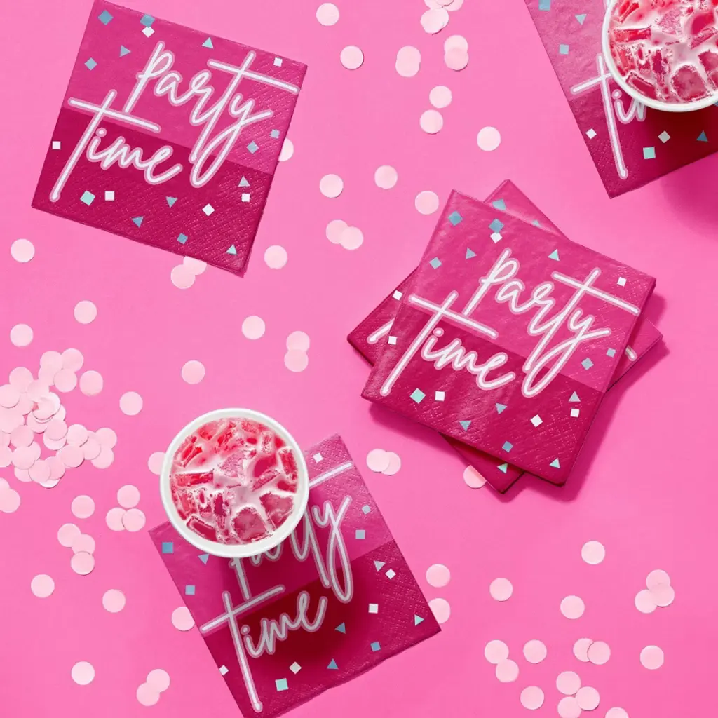 Grab this Hot Pink Foil 21st Birthday Tableware Set to throw a fabulous 21st birthday party! This kit comes with everything you need to host 8 guests with ease. You'll receive 9" round plates for your main course, 7" dessert plates, 5" cocktail napkins, and 6.5" dinner napkins that say "Finally 21" to complete the look. It's the perfect kit to bring your pink party to life and set a festive tone. Hosting an unforgettable birthday party has never been easier with this complete set!
