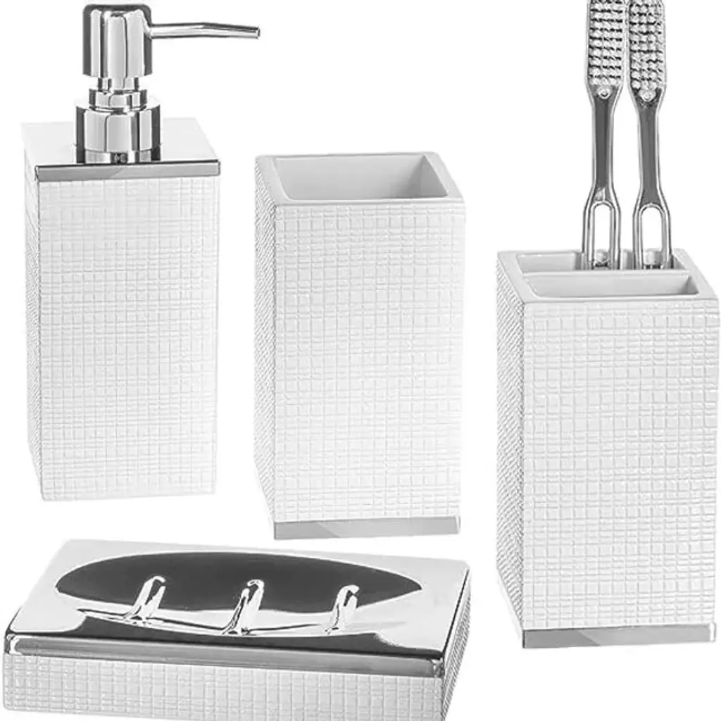 Creative Scents Estella White Bathroom Accessories Set Of 4 - White - White