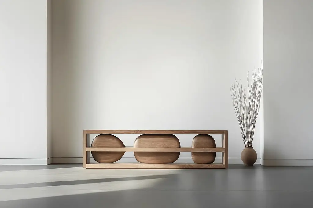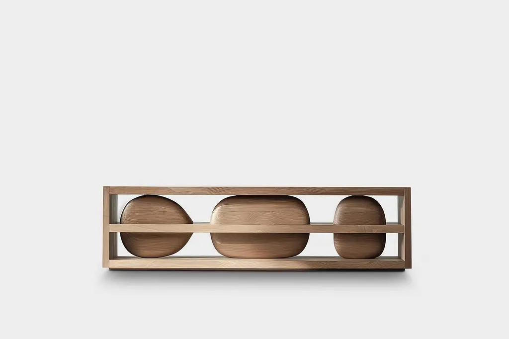 Credenza Sereno No35, Sculptural Base Wooden Furniture by Joel Escalona—Sereno CollectionDesign by Joel Escalona for NONOWhen practicality becomes art, the result is the Sereno Collection by Joel Escalona for NONO. This collection redefines tranquility through exquisite credenzas and sideboards that stand alone in their beauty, embodying a serene simplicity that everyone can feel.The Sereno Collection celebrates minimalism with pieces that don’t need additional decoration to make a statement. Each credenza and sideboard is adorned with unique wooden sculptures, reminiscent of a tranquil pebble, thoughtfully placed to enhance its elegance. These pieces are crafted from solid wood, adding character to each design. Standard models use red oak, but customization with various woods and finishes like walnut, teak, and burnt oak is available to perfectly suit your style and space.Founded in 2011 by Joel Escalona, NONO has over a decade of experience producing high-quality interior furnishings. Joel’s work transcends categorization, blending creativity, productivity, and introspection. His multifaceted approach, encompassing drawing and sculpture, infuses his designs with lyricism, humor, and poetry.NONO's philosophy centers on transforming everyday beauty into extraordinary art forms, seamlessly blending functionality and aesthetics. Each Sereno credenza and sideboard exemplifies this philosophy, offering both beauty and practicality. When you choose a piece from the Sereno Collection, you’re not just acquiring furniture; you’re bringing a piece of art into your home.Each piece in the Sereno Collection makes you feel serene and tranquil, embodying a minimalist elegance that doesn’t require additional ornamentation. The beauty of these designs is that they are complete in themselves. You don't need to add anything else to the compartments or surfaces; they stand alone, transforming any living room or interior project with their quiet sophistication.Experience the serene elegance of the Sereno Collection by Joel Escalona for NONO, where every piece speaks softly yet powerfully, transforming your space with its quiet beauty.———Some details to consider when placing an order with us:• Catalog images are digitally generated. Actual products may slightly vary in texture, grain, and final finish due to natural material differences. Despite these variations, our expertise ensures each piece maintains high quality and matches the intended design.• All of our products are made to order, and the lead time for standard products is estimated to be 9 to 12 weeks, plus shipping time. However, special pieces or sculptures may require a longer lead time.• We offer customization in dimensions and finish for all of our furniture pieces, which may result in additional charges.• We only facilitate freight services by a third party. The client is solely responsible for any associated import/export taxes, as well as any necessary customs paperwork.• We are not responsible for any damages that may occur during shipping or for any customs-related delays.