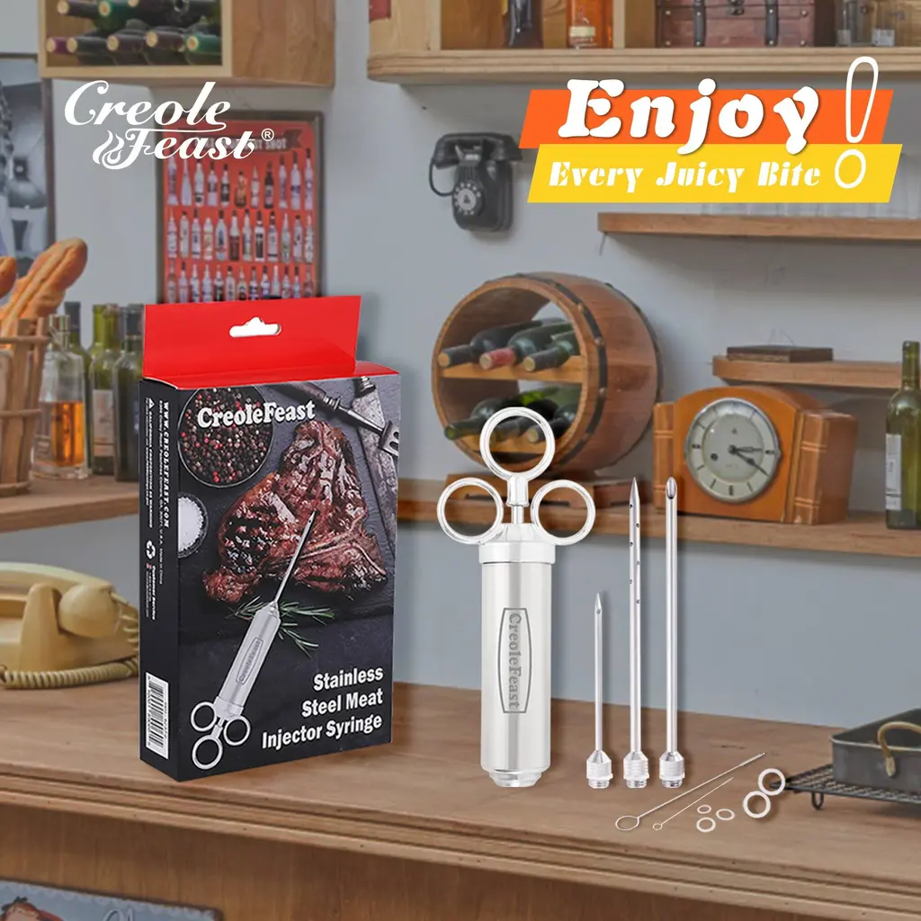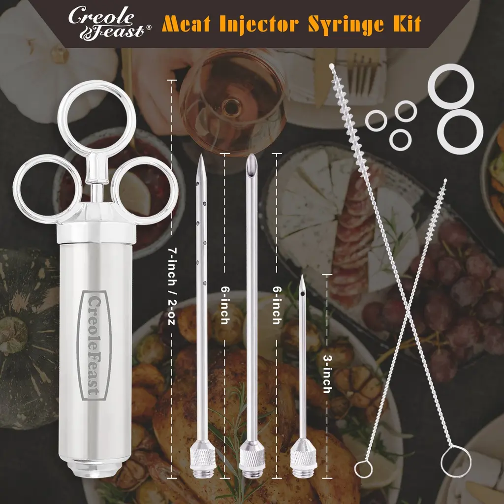 Creole Feast 2-Oz Meat Injector Syringe Kit - Stainless Steel - Silver