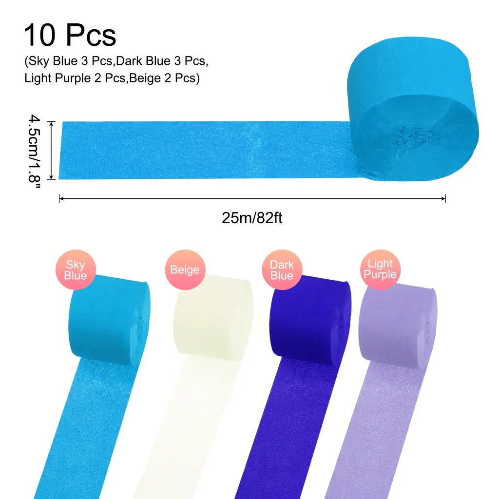 Crepe Paper Streamers 10 Rolls For Decor - Dark Blue, Sky-Blue, Light Purple, Beige