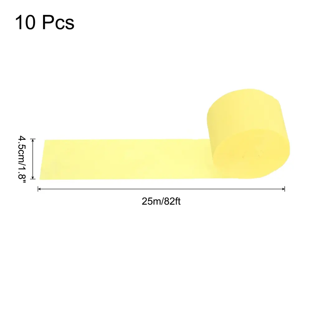 Description:1. These paper streamers are fine texture, lightweight, soft to the touch, and not easy to fade, great for decorating your party space.2. Crepe paper adopts a simple solid color design, smooth to the touch and flexible, the crepe paper streamer is easy to bend into any shape, hang the side of the rolls by side for a simple and colorful backdrop, or get creative and make your decor popular.3. Simply unroll the crepe paper streamers and hang them up on the door, along walls, or across ceilings to create a stunning visual effect. You can also twist and drape them for a more intricate decoration.4. These party streamers are suitable for indoor and outdoor use, making them versatile decorations for a wide range of events such as birthday parties, weddings, graduations, Thanksgiving, various large festival decorations, and more.5. Please keep streamers away from open fires and high temperatures to prevent fire hazards.Specification:Material: Crepe PaperColor: WhiteLength: 25m/82ftWidth: 4.5cm/1.8inPackage Included: 10 rolls x crepe paper streamer
