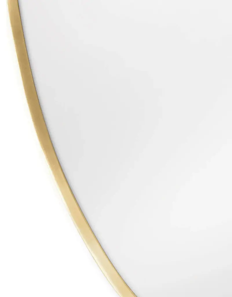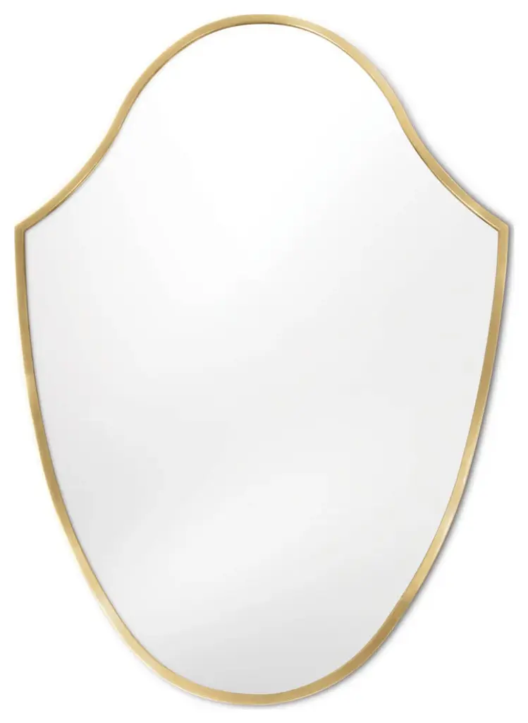 Like a family crest, this striking mirror has a traditional and timeless vignette. Create a statement above an entryway table, chest of drawers or on a wall needing interest. This classic, solid steel frame finished in warm Natural brass will add a touch of elegance to your space.