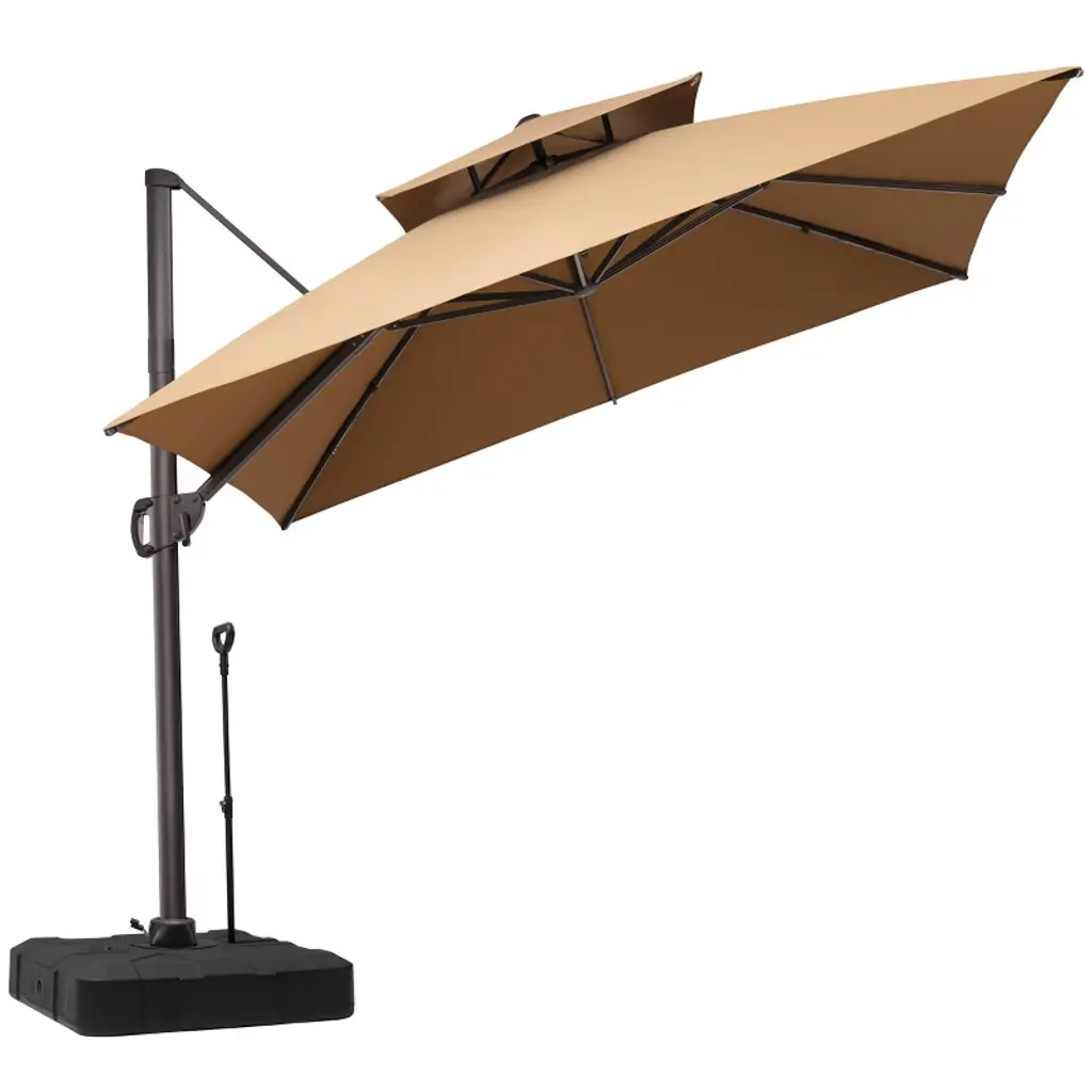 Crestlive Products 10ft Square Double Top Offset Cantilever Umbrella With Base Uv30+ Outdoor 360 Degree Rotation 6 Heights Adjustable Umbrella