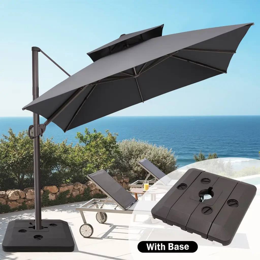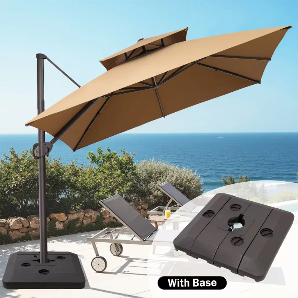 Crestlive Products 10ft Square Double Top Offset Cantilever Umbrella With Base Uv30+ Outdoor 360 Degree Rotation 6 Heights Adjustable Umbrella