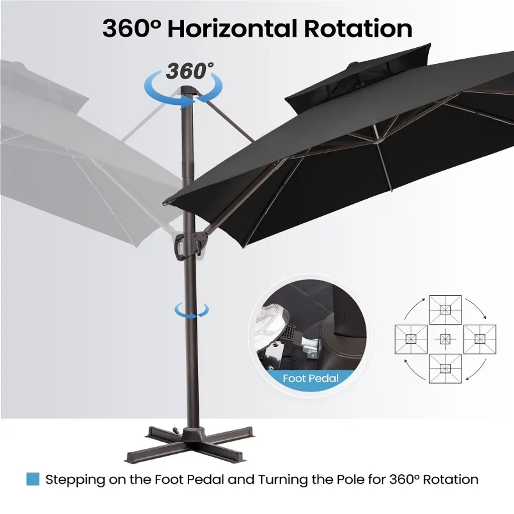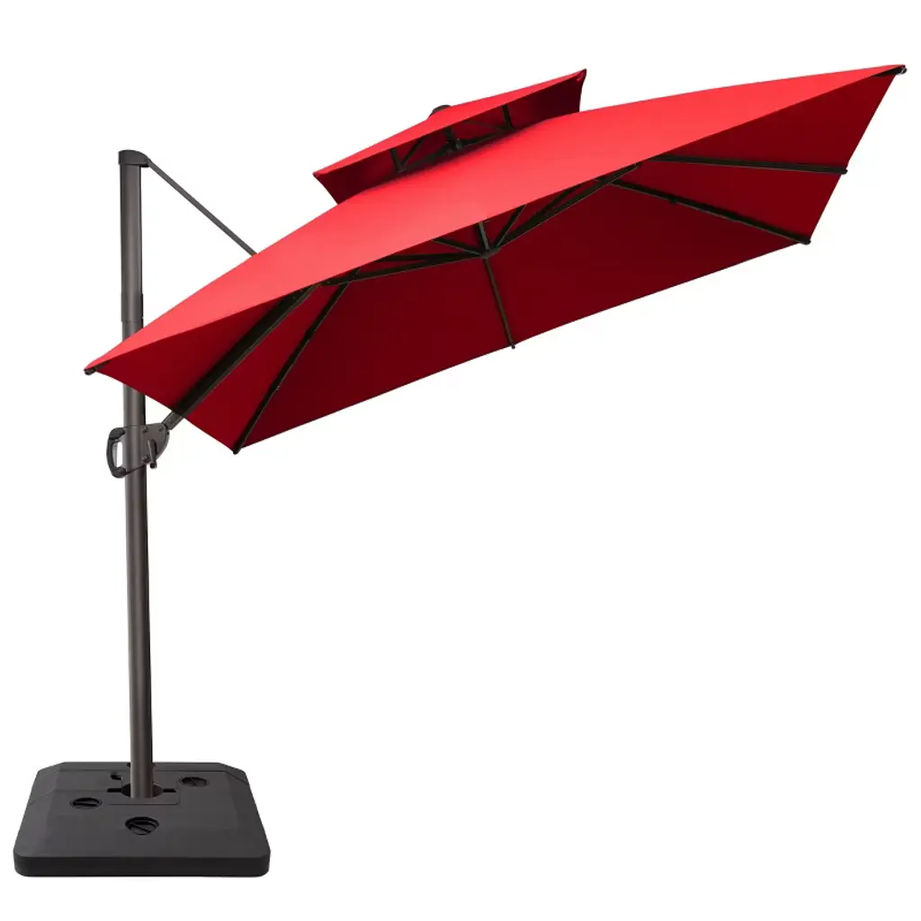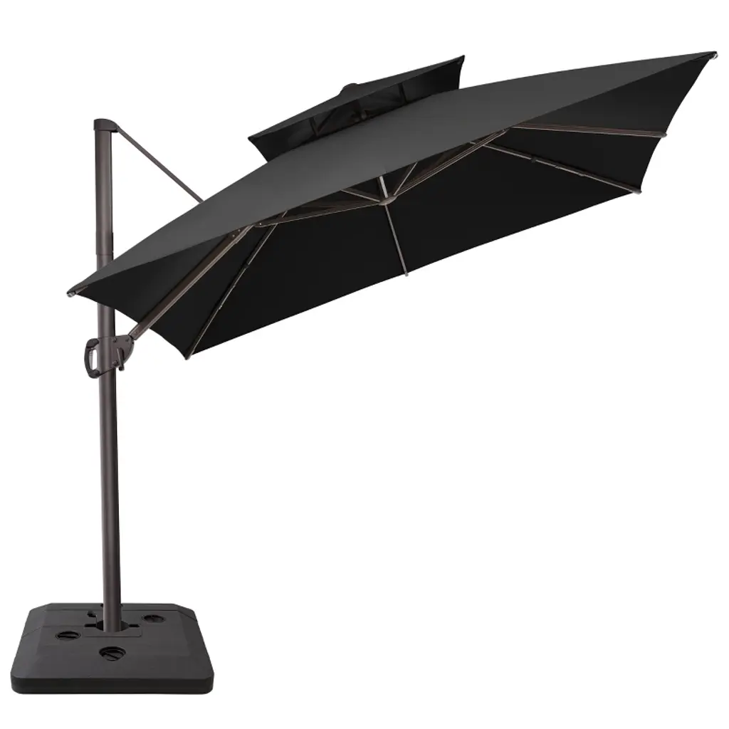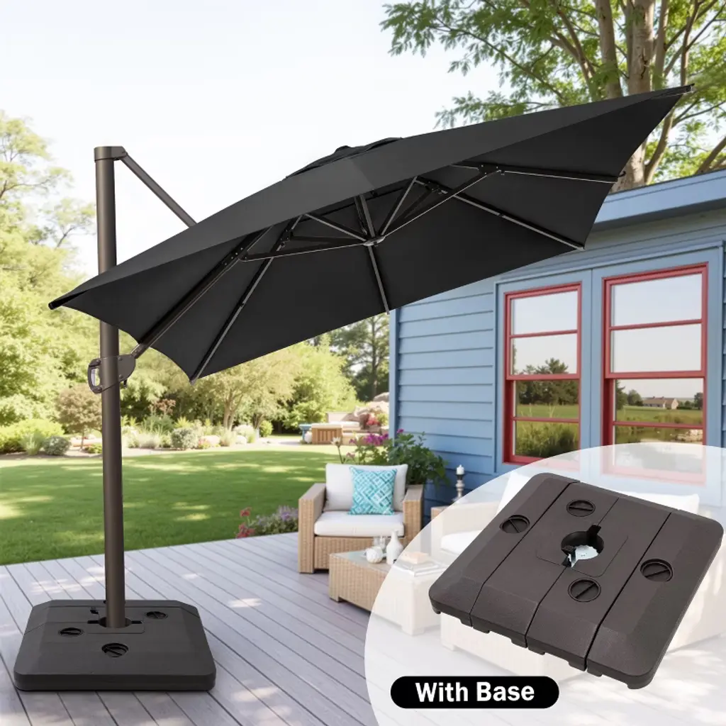 Crestlive Products 10ft Square Double Top Offset Cantilever Umbrella With Base Uv30+ Outdoor 360 Degree Rotation 6 Heights Adjustable Umbrella