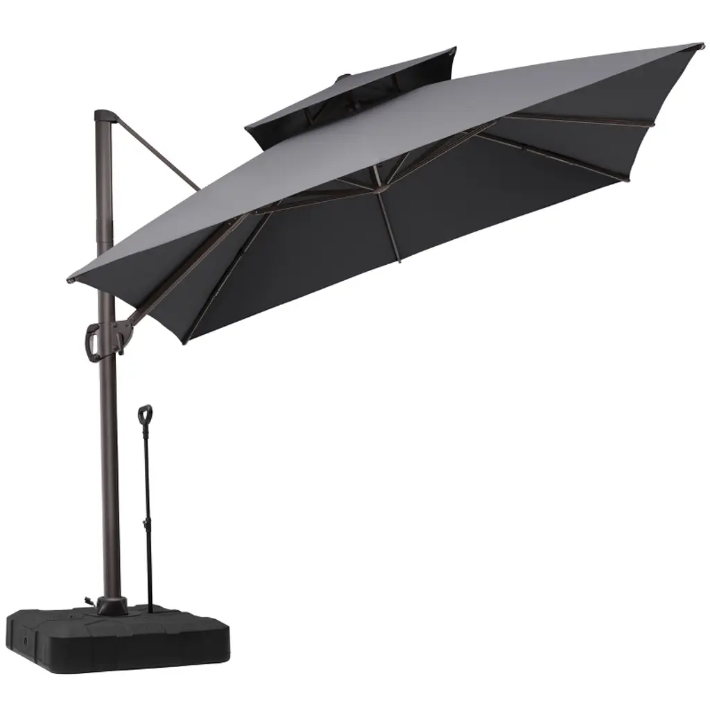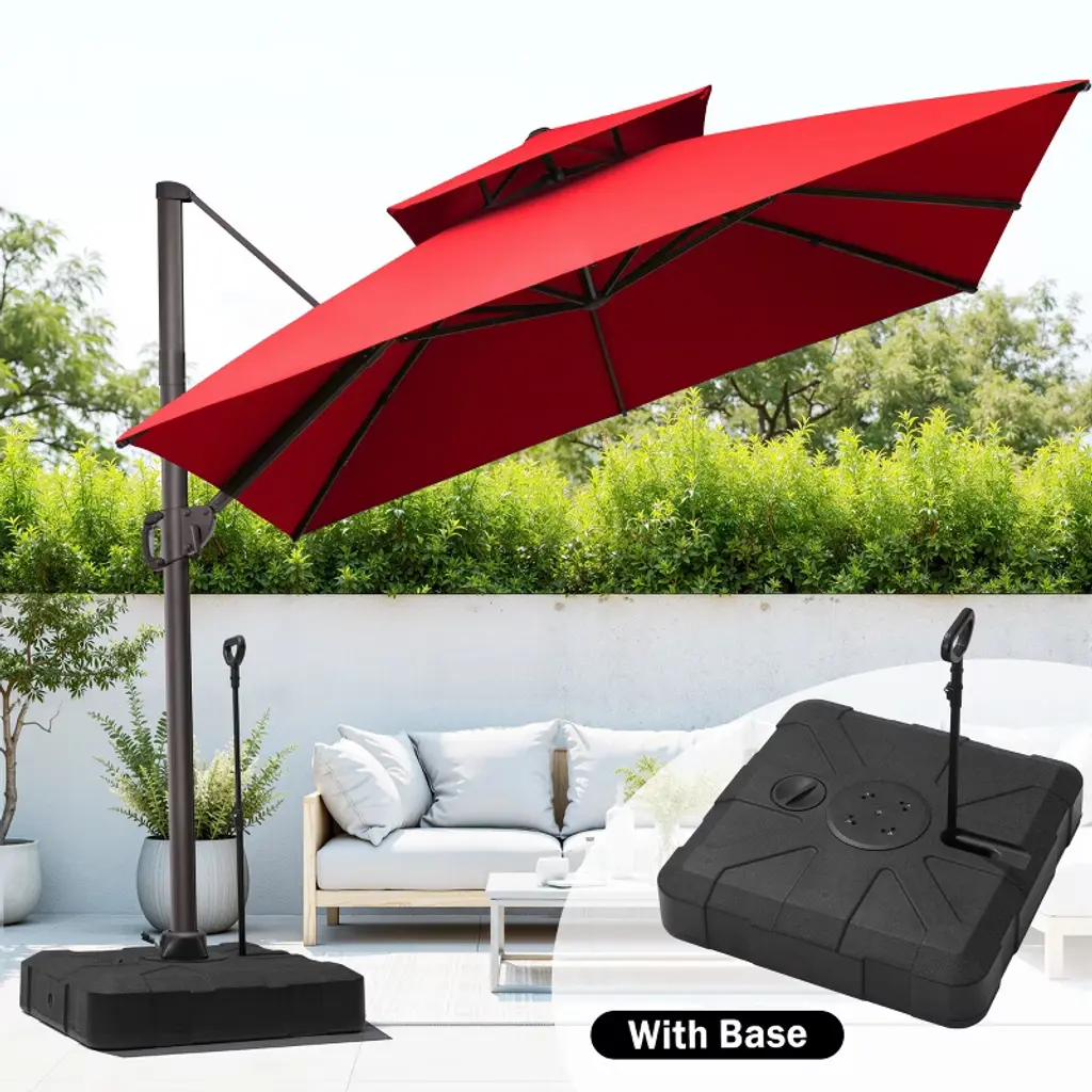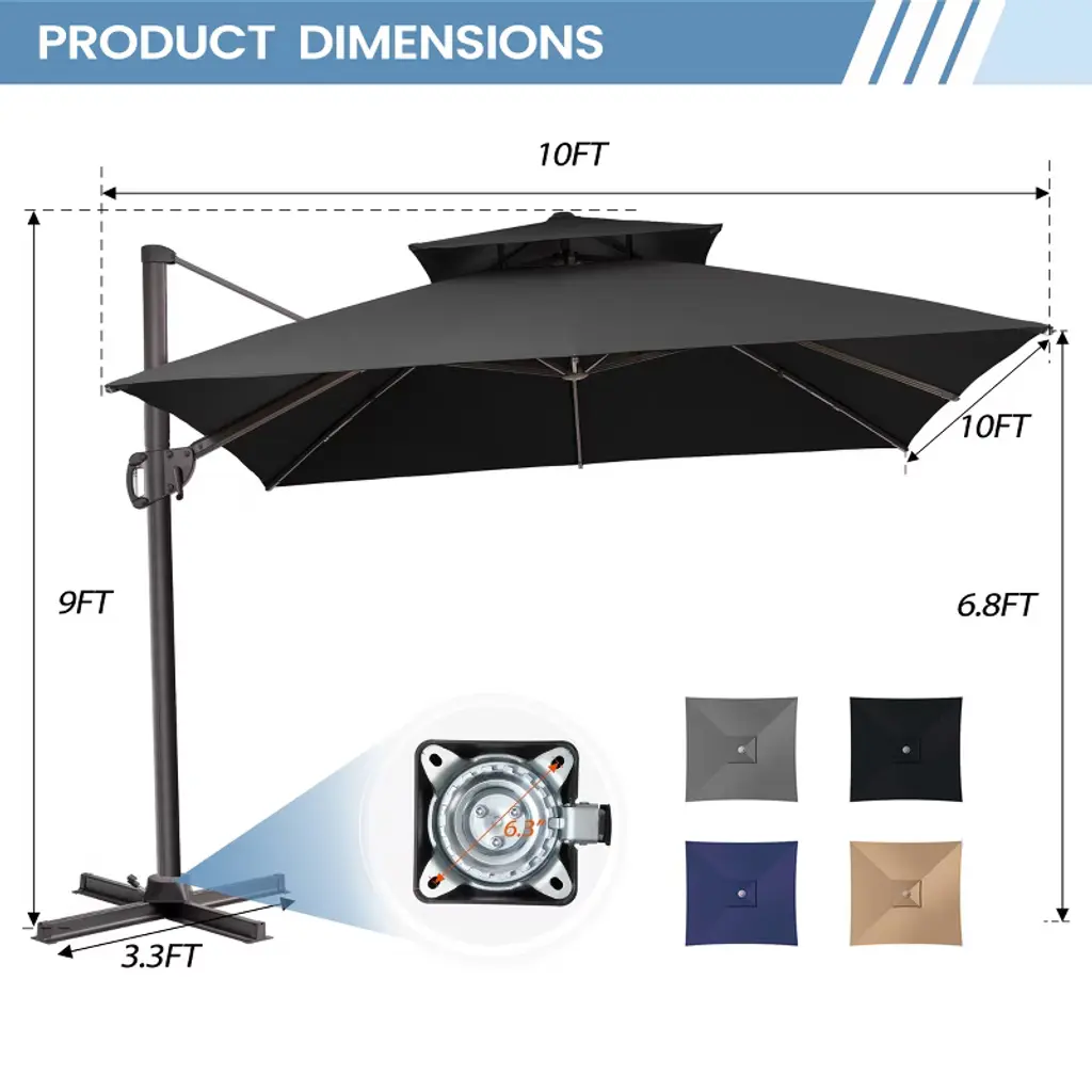 Crestlive Products 10ft Square Double Top Offset Cantilever Umbrella With Base Uv30+ Outdoor 360 Degree Rotation 6 Heights Adjustable Umbrella