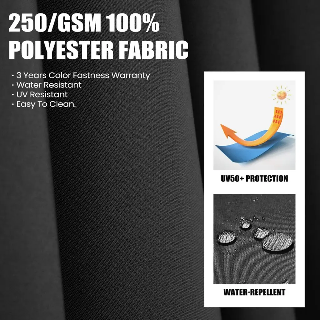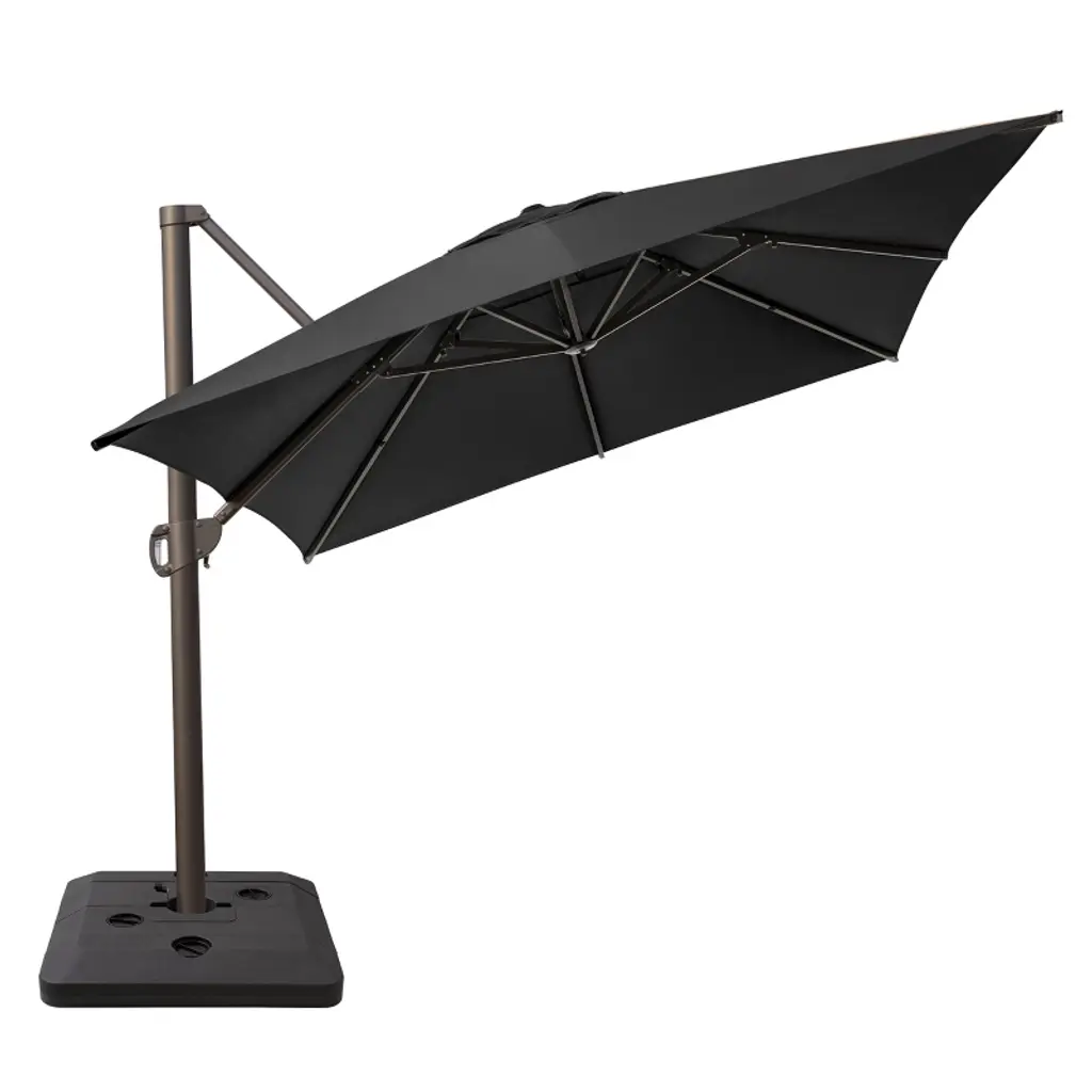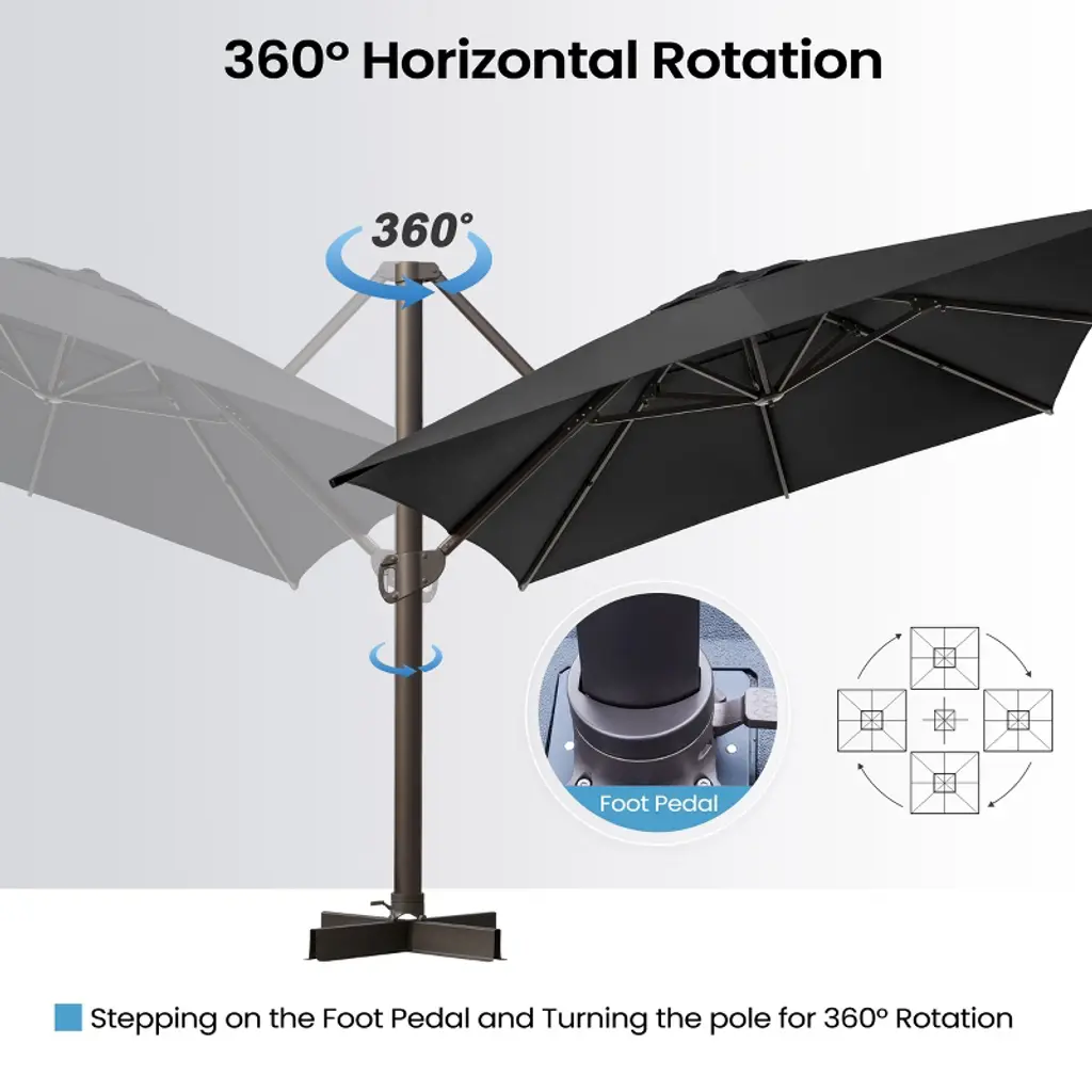 360-degree Rotation by This. Crafted with durable metal, this offset cantilever umbrella is built to last and withstand harsh outdoor conditions. The waterproof and UV-resistant polyester canopy provides ample shade, making it perfect for gardens, balconies, decks, swimming pools, or cafes.