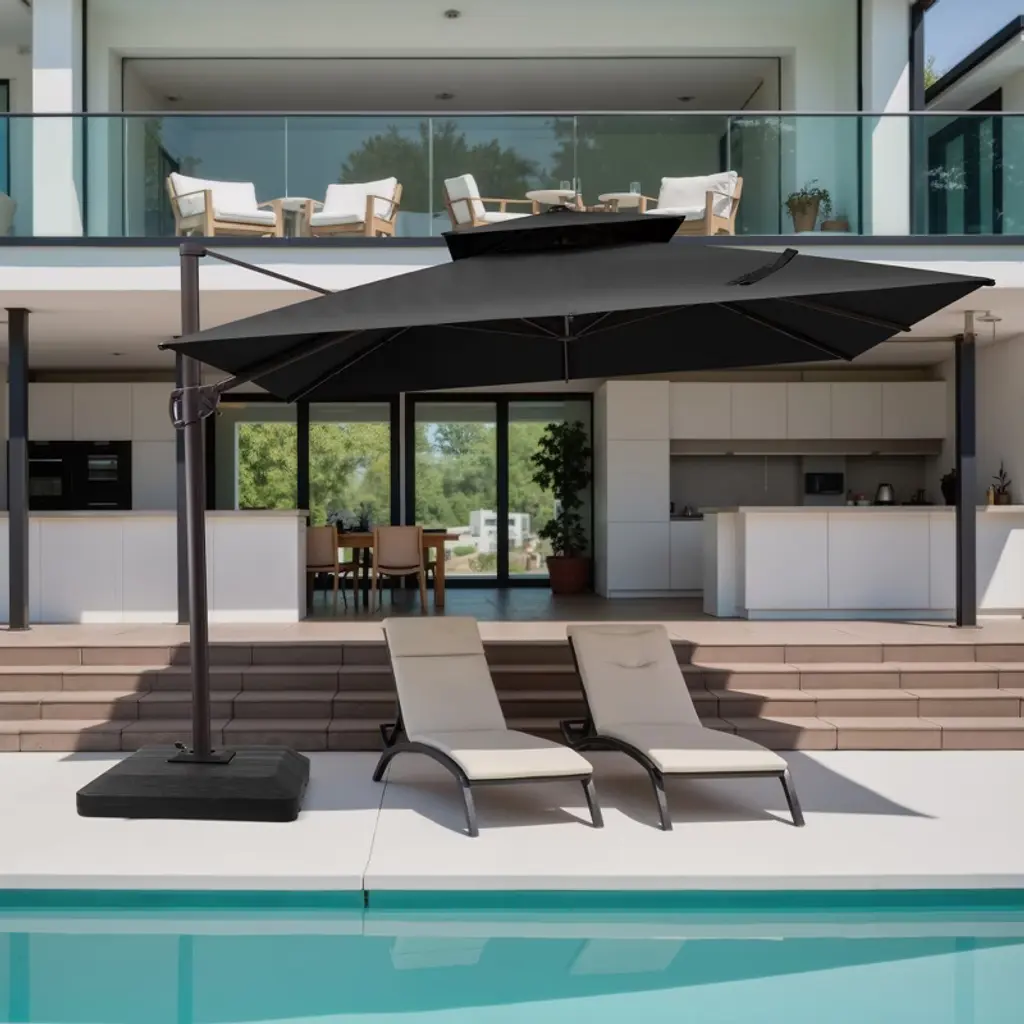Stay protected from the sun with this This 11 x 11 FT Square Patio Offset Cantilever Umbrella. Built with a powder-coated metal frame, this umbrella is durable and perfect for year-round use. Featuring a square, polyester canopy with a wind vent and eight metal ribs, this stylish piece is available in four colors to match your outdoor decor. With a crank-lift frame and easy-to-adjust features, this umbrella is a must-have for any outdoor space.