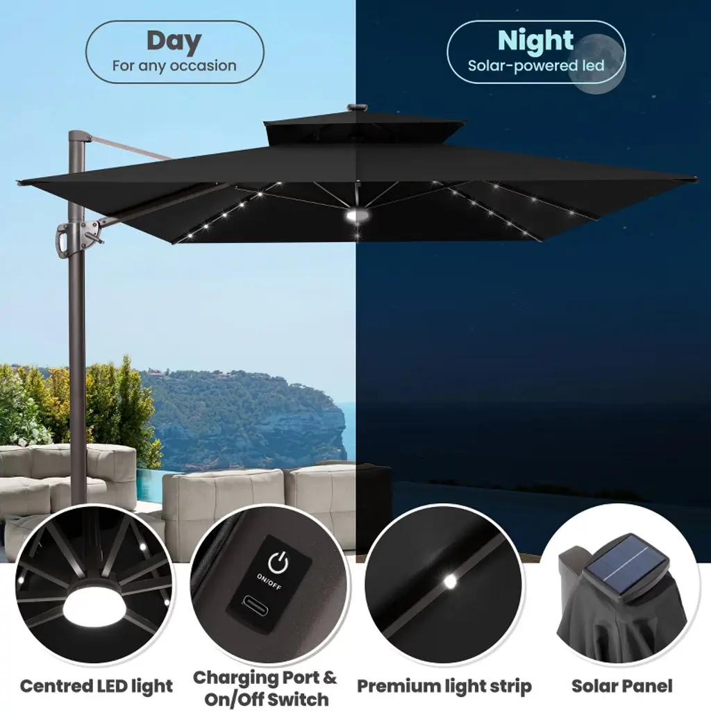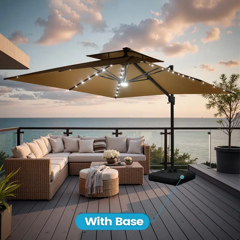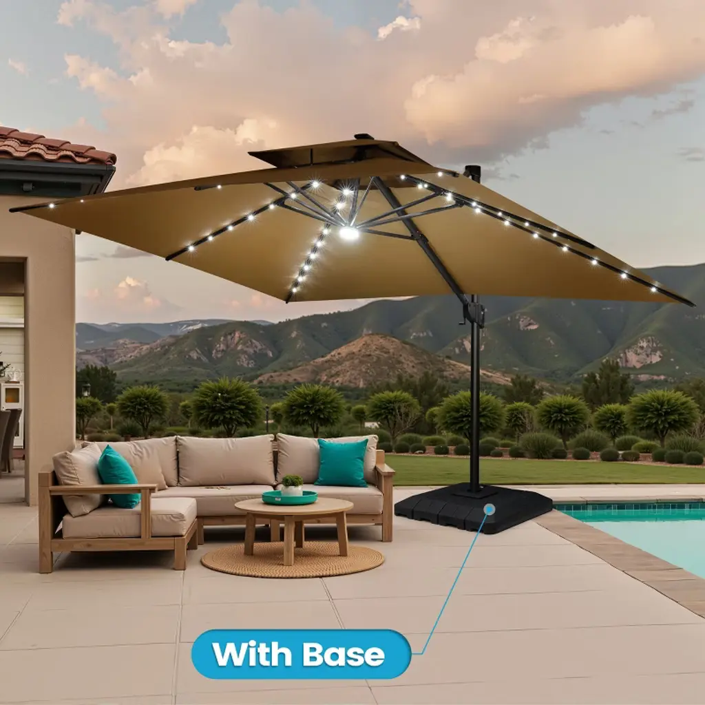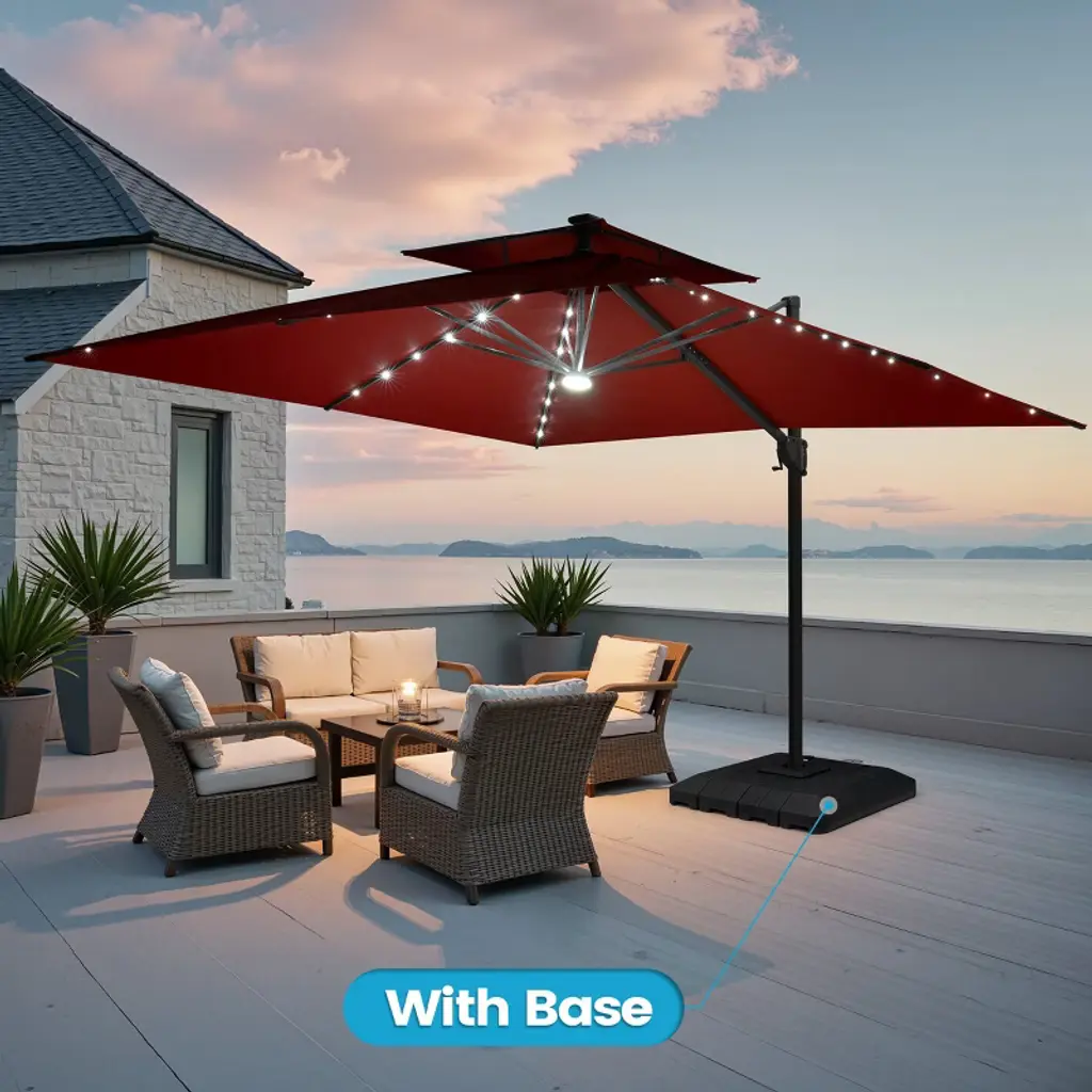 Crestlive Products 11ft Patio Double Top Cantilever Umbrella With Light And Base Set Outdoor 360° Rotation 6 Heights Adjustable Offset Umbrella