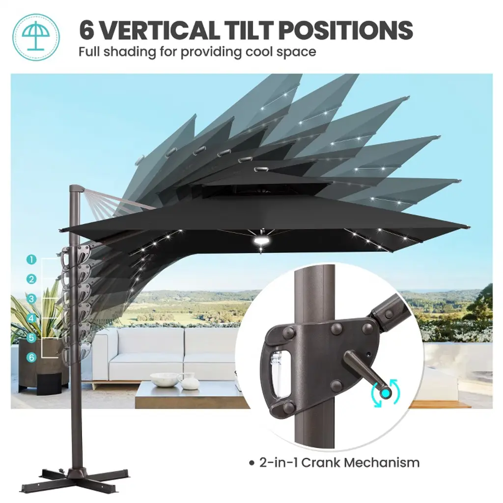 Crestlive Products 11ft Patio Double Top Cantilever Umbrella With Light And Base Set Outdoor 360° Rotation 6 Heights Adjustable Offset Umbrella