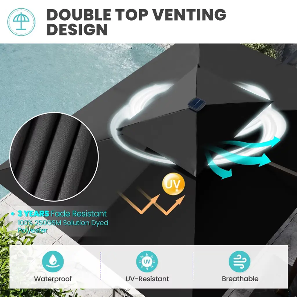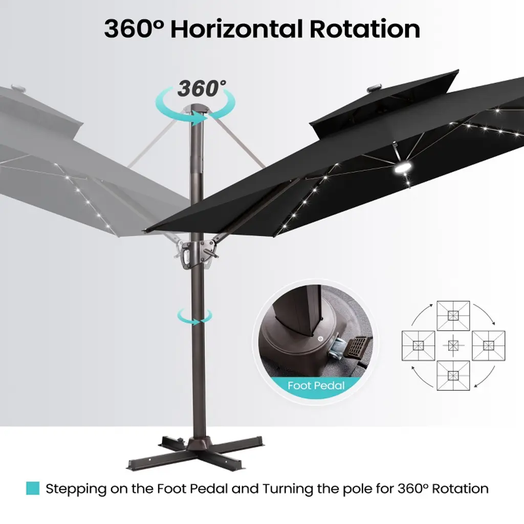 Crestlive Products 11ft Patio Double Top Cantilever Umbrella With Light And Base Set Outdoor 360° Rotation 6 Heights Adjustable Offset Umbrella