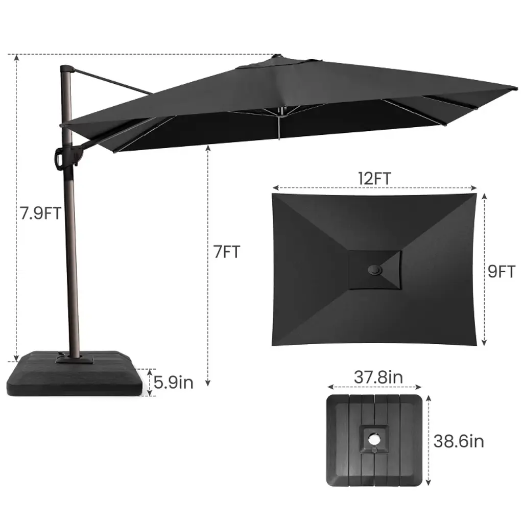 Crestlive Products 12ft Cantilever Umbrella Outdoor 360 Degree Rotation Offset Umbrella 6 Heights Adjustable With Base Black