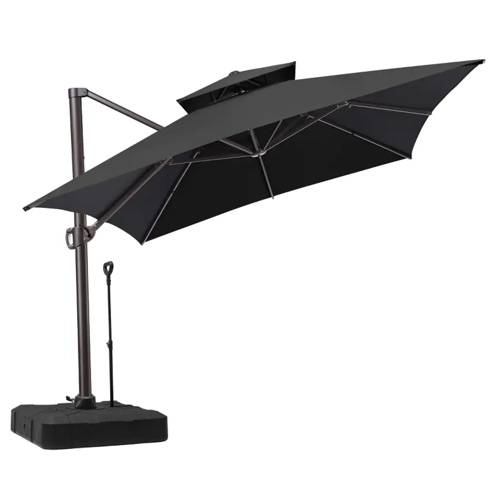 Crestlive Products 13ft Patio Cantilever Umbrella With Base Set Double Top High-strength Aluminum 360°rotation 5 Heights Adjustable