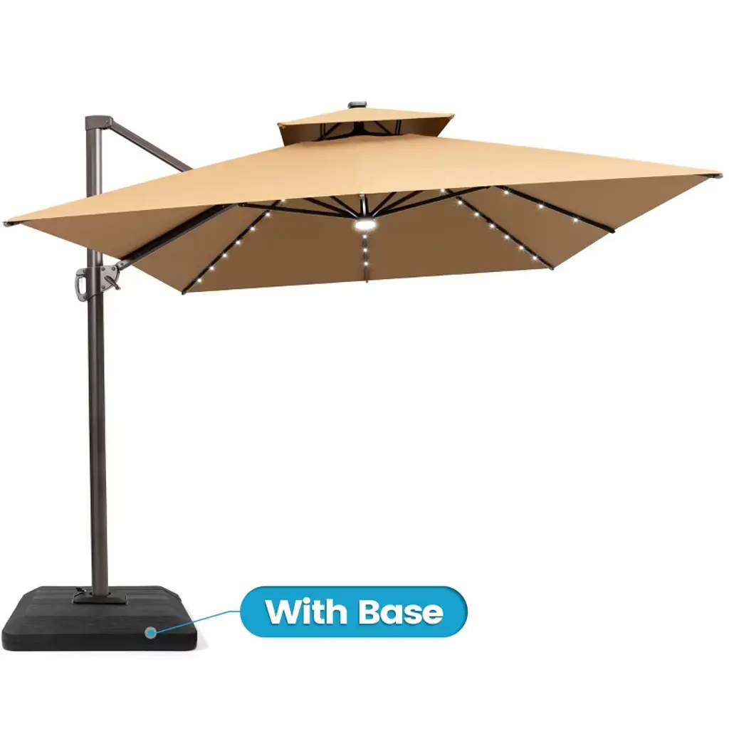 Crestlive Products 13ft Patio Cantilever Umbrella With Light Base Set Double Top High-strength Aluminum 360°rotation 5 Heights Adjustable