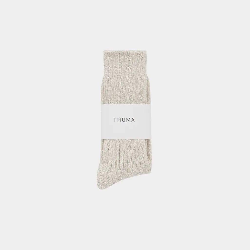 Made of recycled cotton in a luxurious durable loose-knit, the Crew Knit Socks are warm yet breathable and feature a slight slub fit and ribbed, relaxed cuff. Designed for the indoors but hard to leave at home, the socks comfortably flex with wear and bounce back to form after each wash.