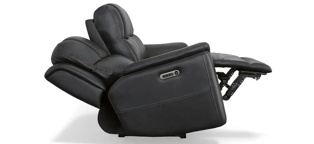 Superior ergonomics combine with the plush comfort of theCrew Power Reclining Sofa. Featuring triple power functionality on the two outside seats that allows for independent adjustment of the headrests, lumbar supports and recline, this sofa also features Zero Gravity which reduces pressure and tension on the body. Enjoy reliable comfort all day, every day, with pad-over armrests, waterfall chaise footrests, thin layered headrests, and divided back cushions. Integrated power controls with built-in USB ports let you achieve your ideal relaxation position at the push of a button while conveniently charging your mobile devices. Available in two color choices, the Crew power reclining sofa is upholstered in top grain leather for exceptional beauty and durability.