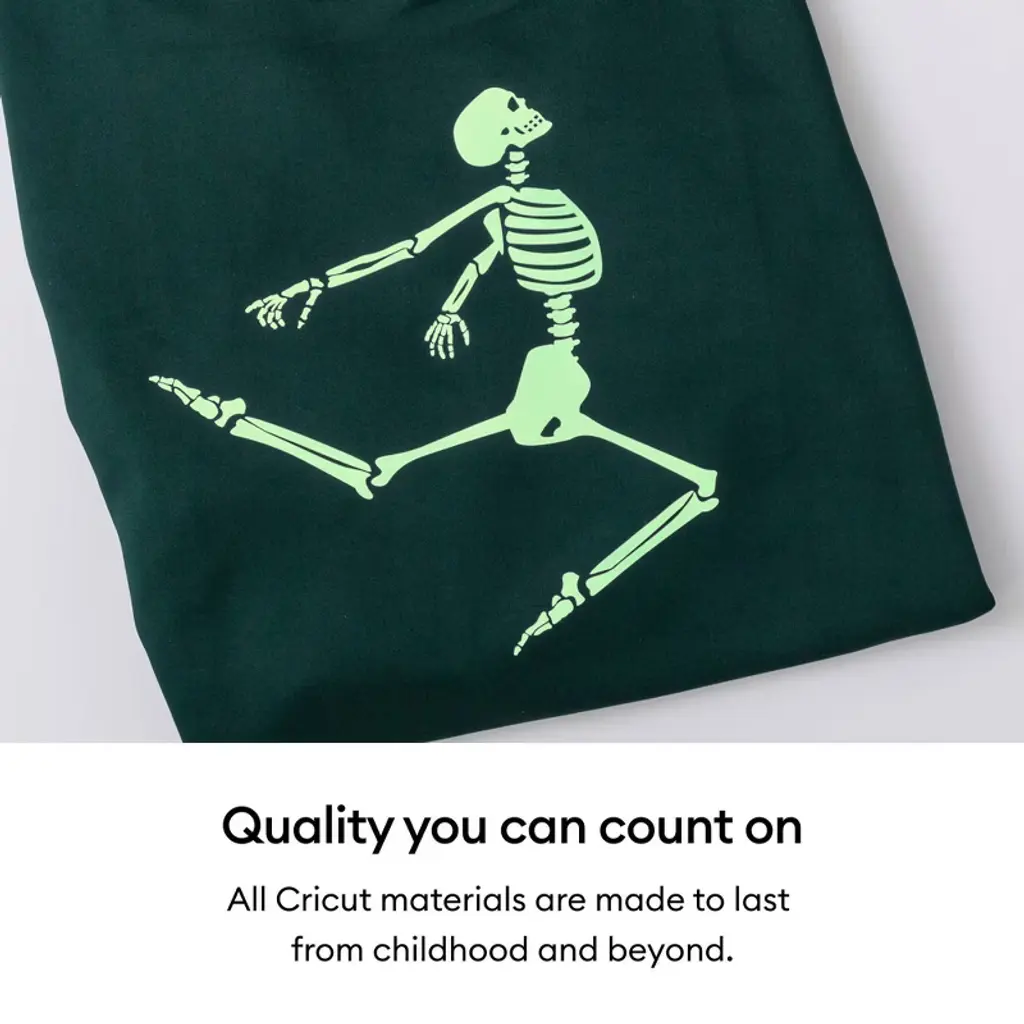 With Cricut® Glow-in-the-Dark Iron-On, personalize costumes, sweatshirts, T-shirts, jackets, backpacks, and so much more with a design that glows. For optimal glow, charge in direct light. All Cricut materials are optimized for Cricut cutting machines with automatic cut settings in Design Space® to ensure you have the best cutting experience.