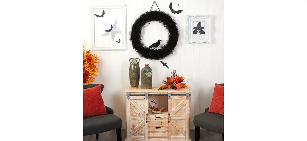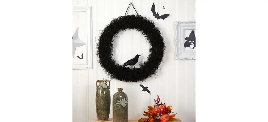 Have a dark Halloween this season with the Crisp 30" Raven Twig Wreath. Perfect for sprucing up a bare wall or an empty doorway.