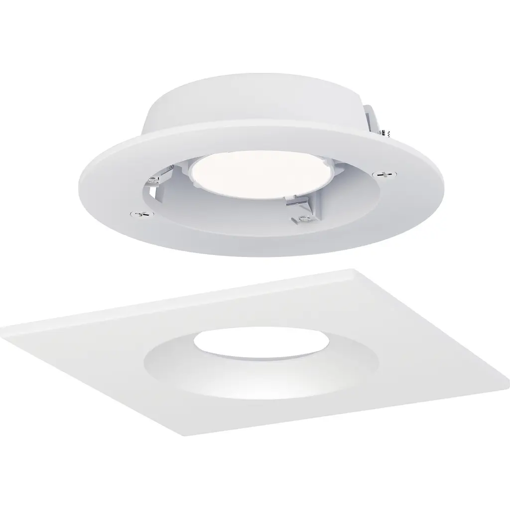 High performance and high in style, the Crisp is designed as a surface mount that install into a variety of 4-0 junction boxes while boasting a recessed appearance. The fixtures almost impossibly slopes into the junction box with snap in trims in a variety of styles. Purchase the mud-in ring assembly kit and you can opt for a trim-less design. Not only good-looking, each unit also delivers over 1000 lumens providing ample lighting. With its concave design, the light source is concealed from the finished ceiling surface reducing glare.