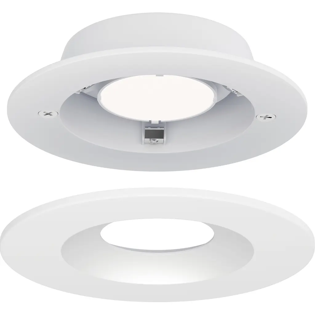 High performance and high in style, the Crisp is designed as a surface mount that install into a variety of 4-0 junction boxes while boasting a recessed appearance. The fixtures almost impossibly slopes into the junction box with snap in trims in a variety of styles. Purchase the mud-in ring assembly kit and you can opt for a trim-less design. Not only good-looking, each unit also delivers over 1000 lumens providing ample lighting. With its concave design, the light source is concealed from the finished ceiling surface reducing glare.