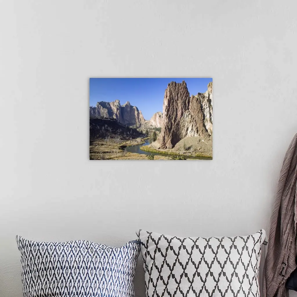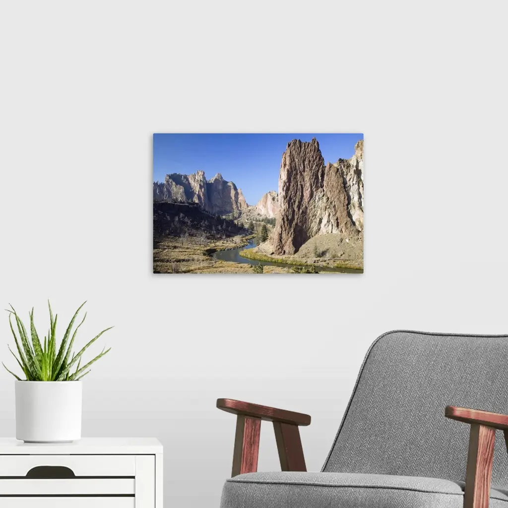 Crooked River winding below rock spires, Smith Rock State Park, Oregon wall art for home and office decor. Discover canvas art prints, photos, mural, big canvas art and framed wall art in GreatBigCanvas.com's varied collections.
