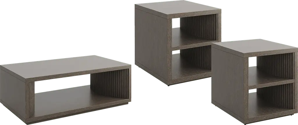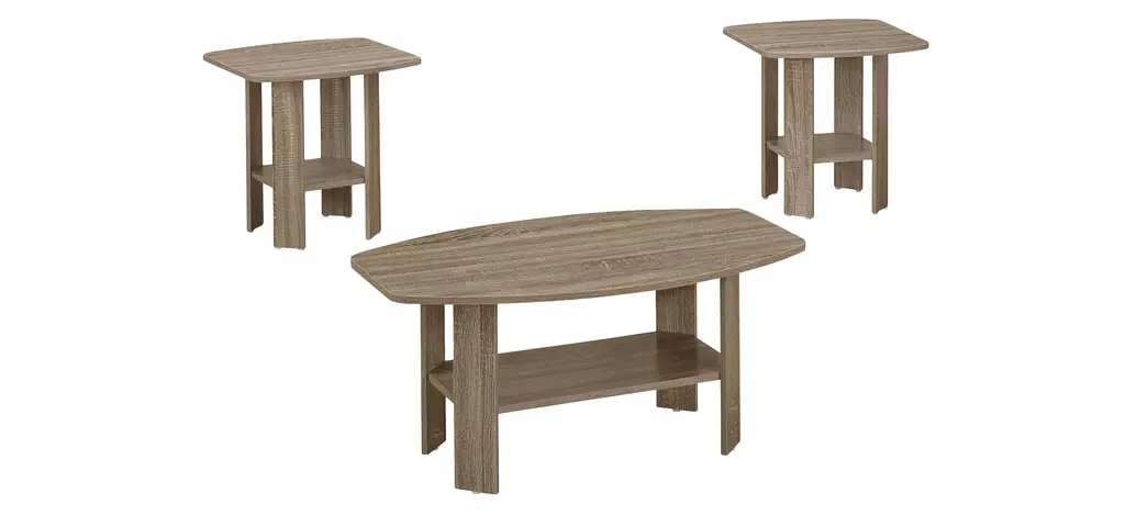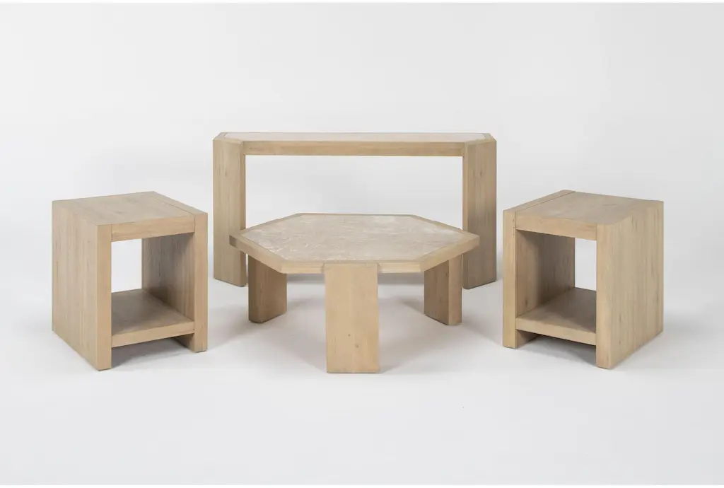 Enhance your living room with the Crosby 4 Piece Wood Coffee Table Set in a casual style. The riverbed beige color and solid hardwood construction offer durability and a neutral, natural aesthetic. This rectangle-shaped set includes storage and shelves for added convenience.