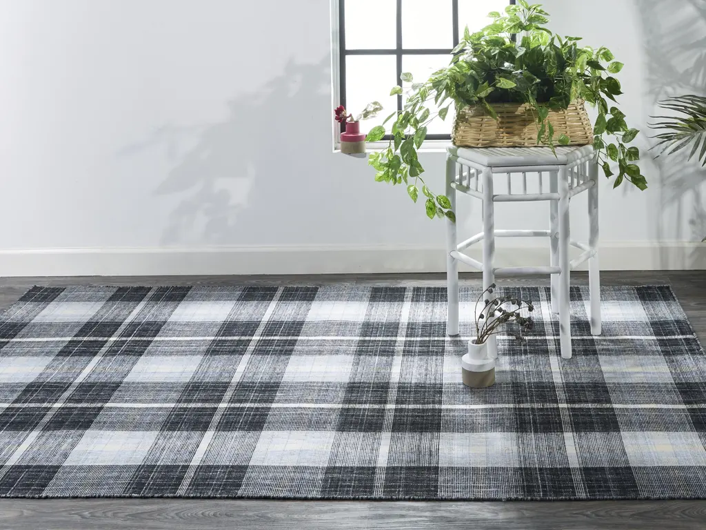 Crosby Transitional Plaid - Black/blue/white - Clearance - 8' X 10' Rectangle