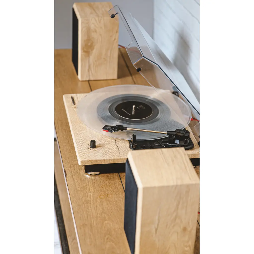 In music, "con brio" means to play with spirit, and Crosley's Brio Record Player embodies that wholeheartedly. Fully equipped with a three-speed turntable, built-in Bluetooth, and bookshelf speakers, this record player allows the energy of your music to flow freely. The natural finish and Scandi-cool vibes of the Brio make it a perfect fit for your modern home and eclectic vinyl collection.Features: