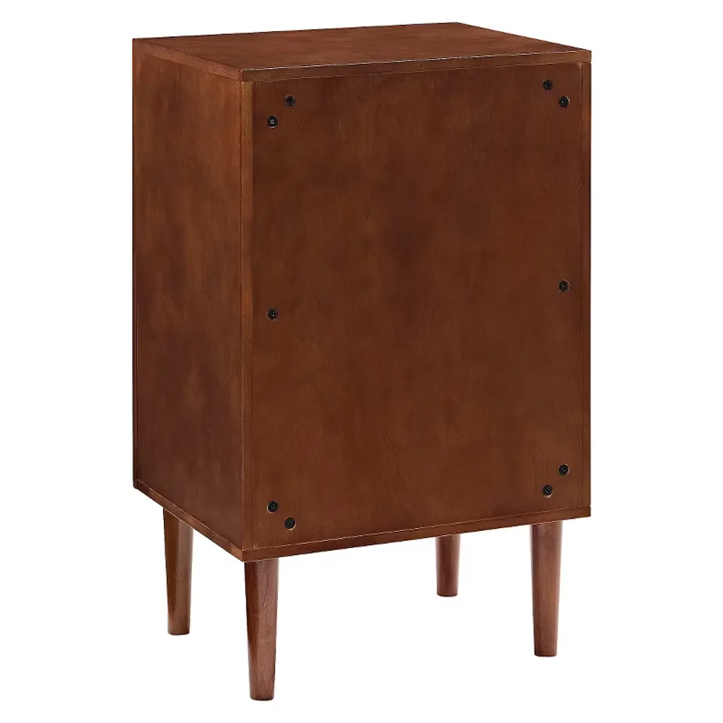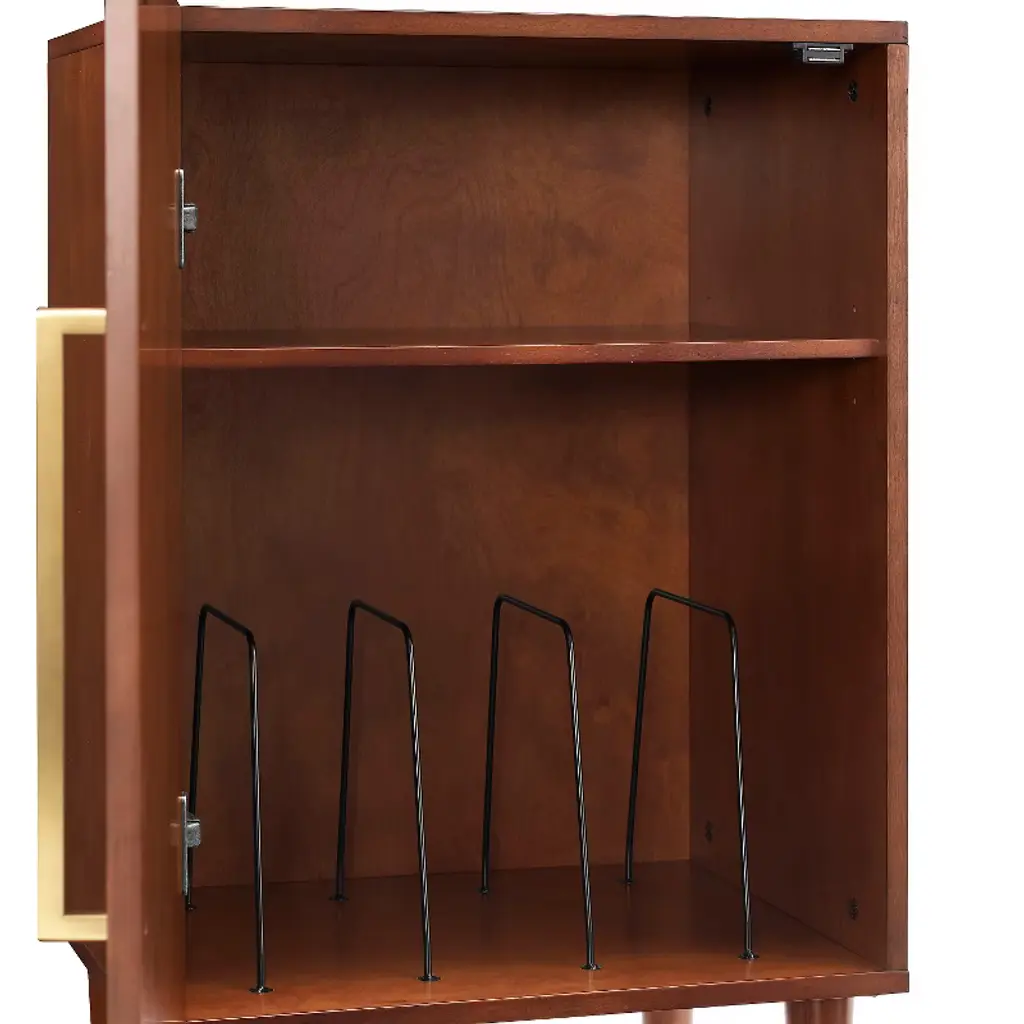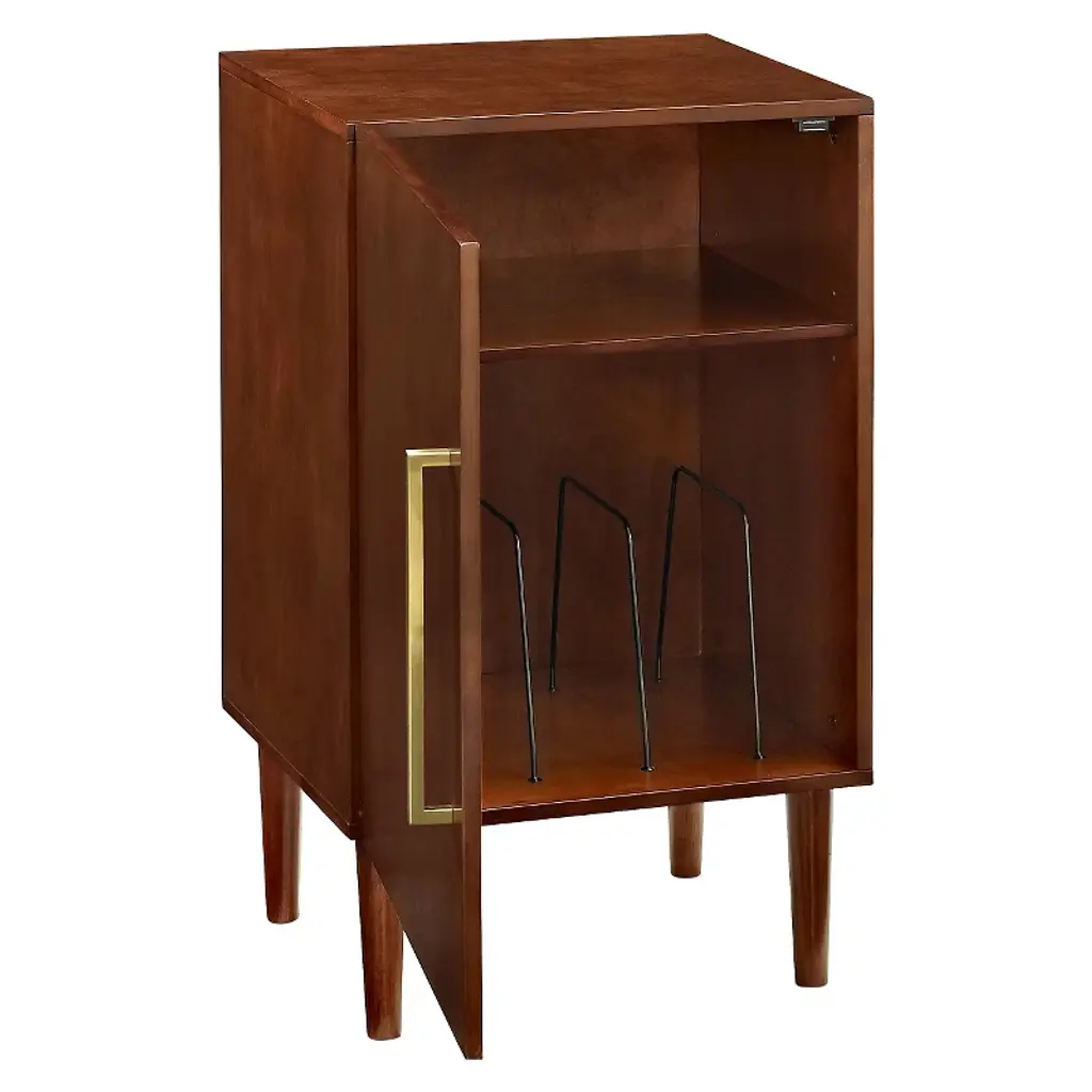 The classic mid-century modern design of Crosley's Everett Record Player Stand is the perfect compliment to your treasured turntable. The finished top is sized perfectly to accommodate most component - style record players. Tucked behind the door are wire dividers - to keep your records organized - and an accessory shelf, which is perfect for your odds and ends. Unadorned lines and genuine metal accents round out an authentic design that speaks to a simpler time. Combined with Crosley's reputation for quality craftsmanship and design, our Everett Record Player Stand is a timeless piece you will enjoy for years to come.