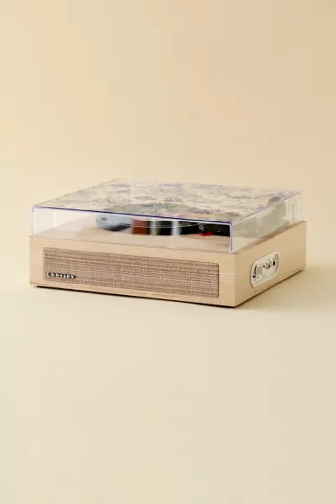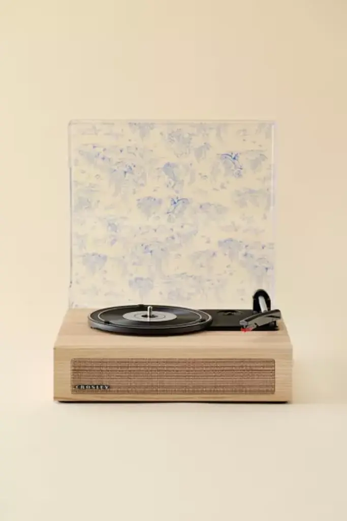 Small but mighty and packaged in a sweet mermaid toile design, this Crosley turntable fills your space with smooth, quality sound. Complete with three speeds, a built-in receiver and wireless connectivity, this record player can fulfill any of your music-listening needs. Available exclusively at Urban Outfitters. **Features** \- Crosley UO Exclusive Scout Record Player \- Turntable finished with mermaid toile motifs at the lid \- 3-Speeds: 33 1/3, 45 & 78 \- Built-in Bluetooth receiver \- Headphone jack \- UO exclusive **Content + Care** \- 60% Wood, 20% veneer, 15% plastic, 3% metal, 2% others (PCB board, wires, etc.) \- Wipe clean \- Imported \- Made in compliance with US electrical standards. To use this item outside of the US, pair with an outlet adapter and voltage converter made specifically for use in your location. **Size** \- Dimensions: 10.75"l x 12.25"w x 4.75"h \- Weight: 4 lbs \- Shipping package dimensions: 14.25"l x 14.25"w x 6.5"h \- Shipping package weight: 4.8 lbs