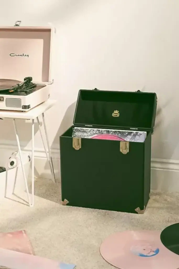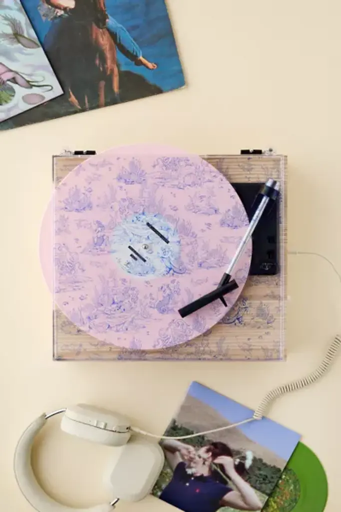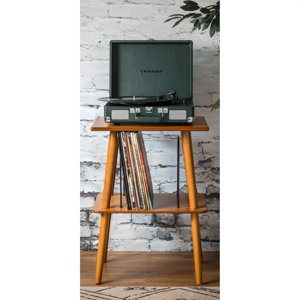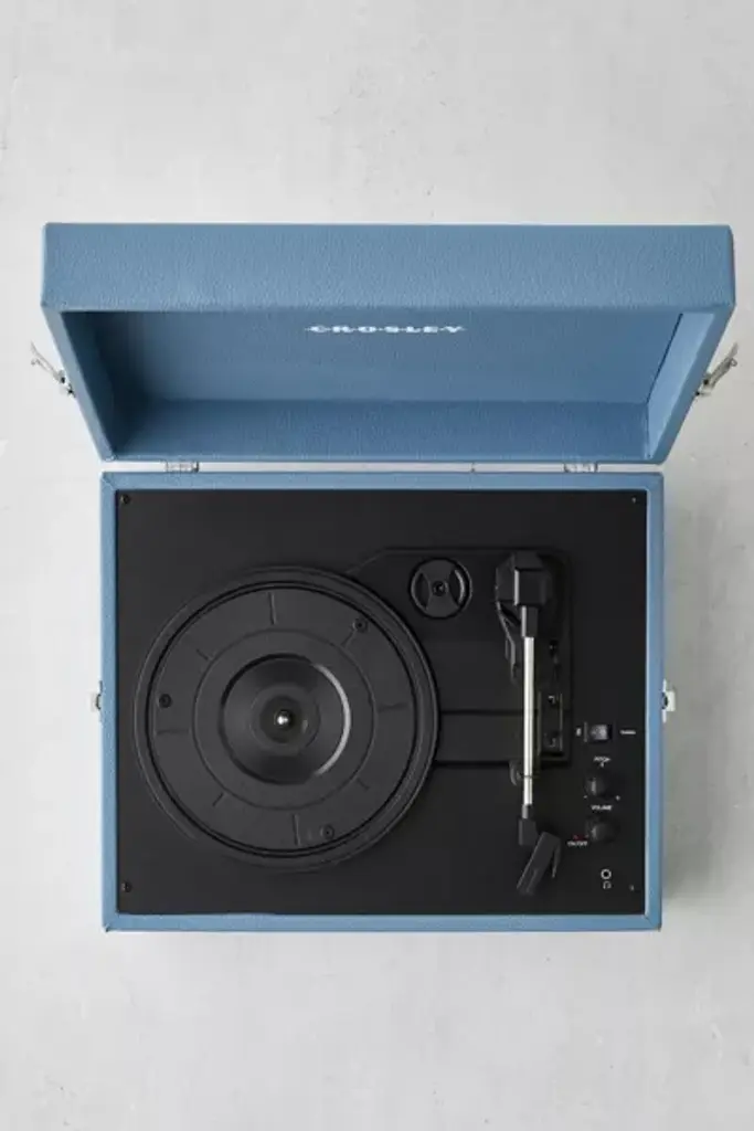 Bluetooth-compatible & portable vintage-inspired turntable housed in a retro-look briefcase design from the experts at Crosley. This entry-level record player is perfect for playing your favorite vinyl LPs or streaming music from your digital playlist right to the speakers. Comes complete with a headphone jack, RCA audio out, and features dynamic, full-range stereo speakers. Compatible with all portable audio devices and plays LPs: 33 1/3, 45 and 78 RPM. To play outside of the US, please pair with a power converter. **Features** \- Equipped with Bluetooth technology for streaming music wirelessly from any handheld device \- Belt-driven turntable mechanism \- 3 speeds: 33 1/3, 45, 78 \- Adjustable pitch control \- Built-in stereo speakers \- Headphone jack \- AC Power adapter \- RCA audio out **Content + Care** \- MDF, vinyl \- Wipe clean \- Imported **Size** \- Dimensions: 14"l x 10.5"w x 4.63"h