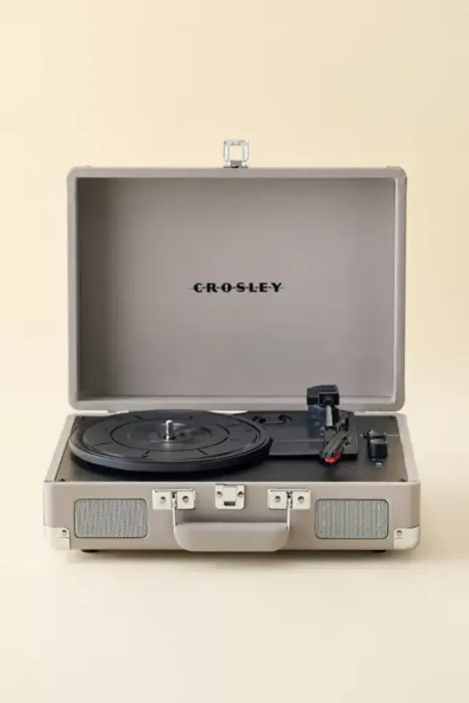 Bluetooth-compatible & portable vintage-inspired turntable housed in a retro-look briefcase design from the experts at Crosley. This entry-level record player is perfect for playing your favorite vinyl LPs or streaming music from your digital playlist right to the speakers. Comes complete with a headphone jack, RCA audio out, and features dynamic, full-range stereo speakers. Compatible with all portable audio devices and plays LPs: 33 1/3, 45 and 78 RPM. To play outside of the US, please pair with a power converter. **Features** \- Equipped with Bluetooth technology for streaming music wirelessly from any handheld device \- Belt-driven turntable mechanism \- 3 speeds: 33 1/3, 45, 78 \- Adjustable pitch control \- Built-in stereo speakers \- Headphone jack \- AC Power adapter \- RCA audio out **Content + Care** \- MDF, vinyl \- Wipe clean \- Imported **Size** \- Dimensions: 14"l x 10.5"w x 4.63"h