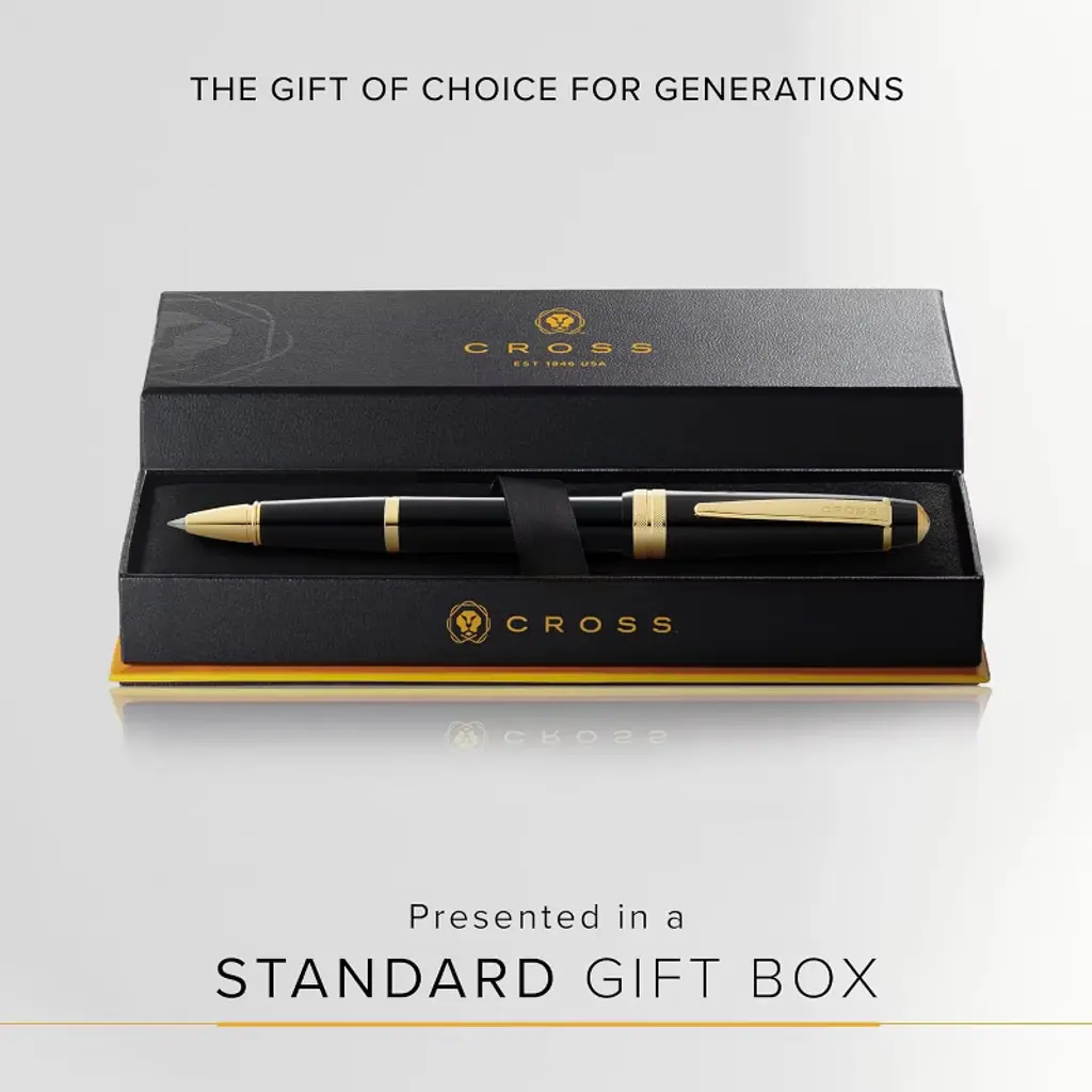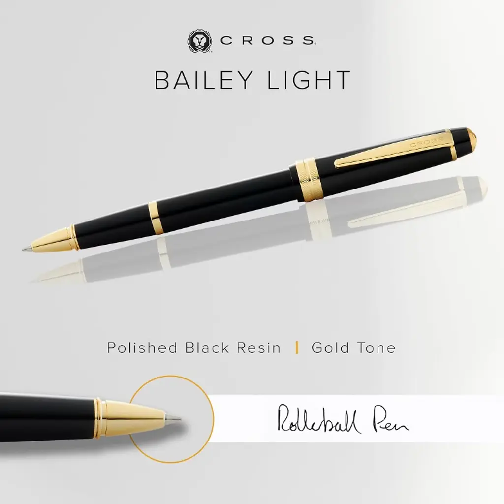 Classic elegance meets modern comfort in the Cross Bailey Light™ Polished Black Resin and Gold Tone Rollerball Pen. Crafted from high-quality polished black resin, this pen offers a sleek, sophisticated look while remaining remarkably lightweight for effortless writing. The warm gold-tone accents add a touch of luxury, perfectly complementing its refined silhouette. With a smooth-flowing rollerball tip for crisp, consistent lines, the Bailey Light™ is an ideal choice for professionals, students, or anyone seeking everyday writing performance with timeless style.