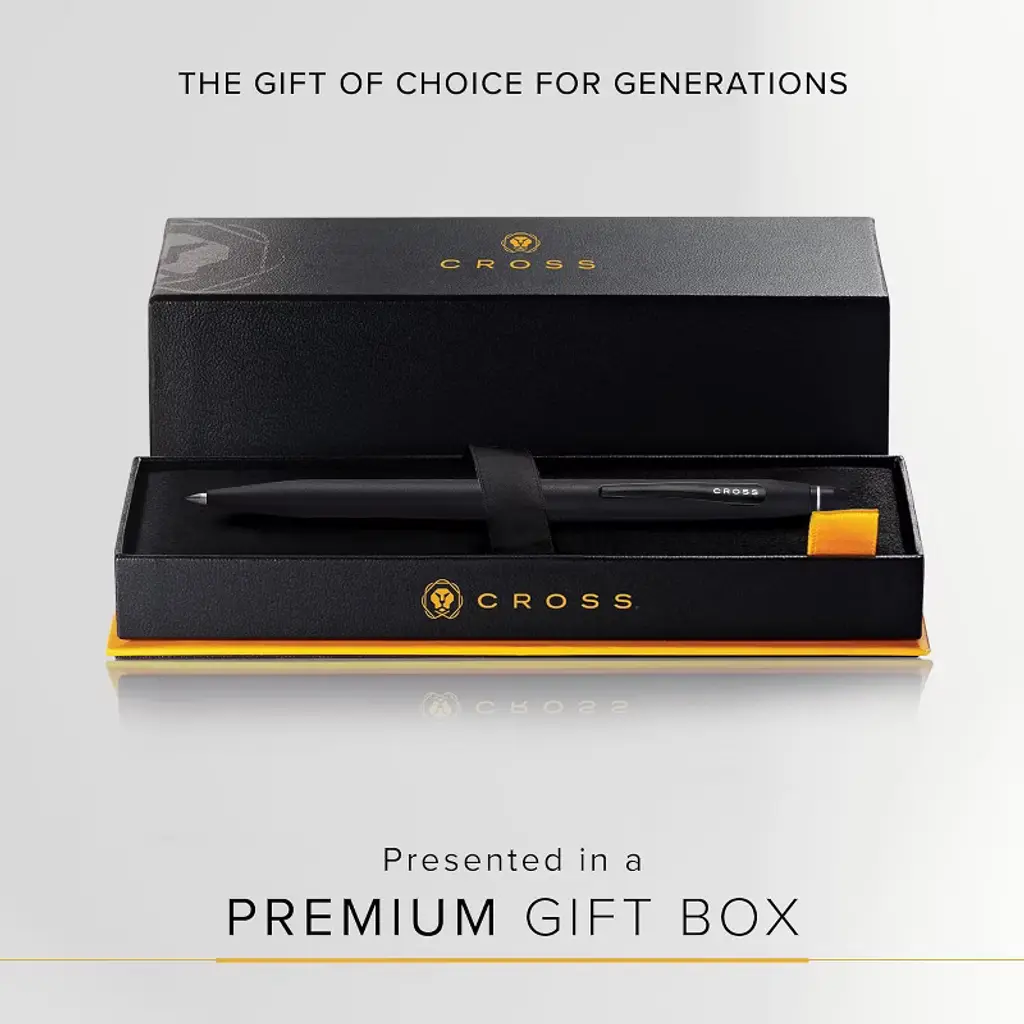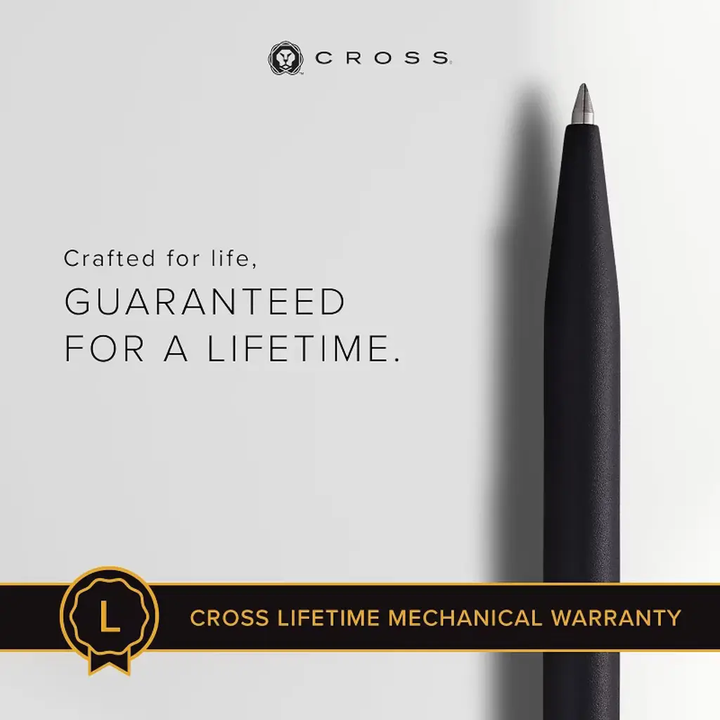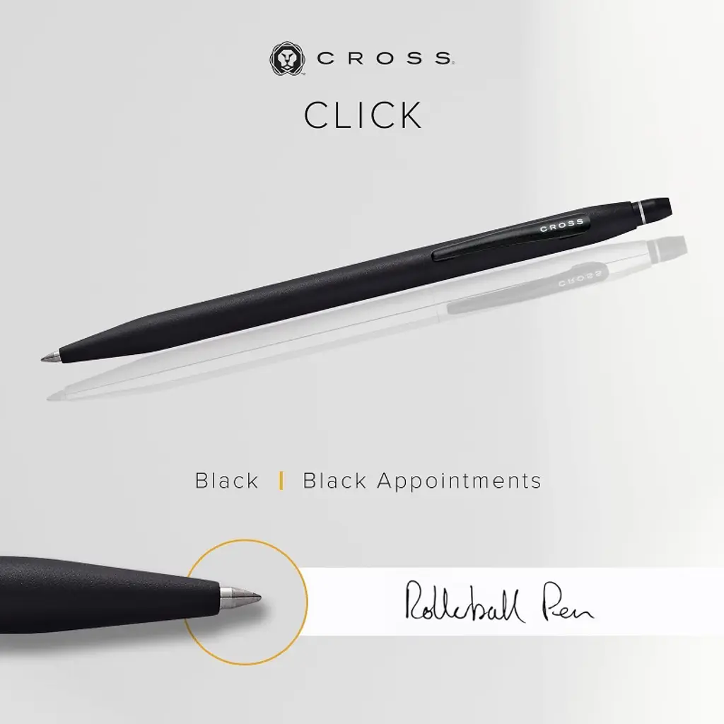 Sleek, modern, and effortlessly sophisticated — the Cross Click™ Rollerball Pen in classic black with matching black appointments is designed for those who appreciate style and performance. Its streamlined profile and smooth gel ink delivery make it a pleasure to write with, whether you're signing documents or jotting down ideas. Equipped with the versatile Selectip® system, this pen offers the flexibility to switch between gel, rollerball, or felt-tip refills to suit your writing style. Elegant yet functional, it’s the perfect companion for professionals and pen enthusiasts alike.