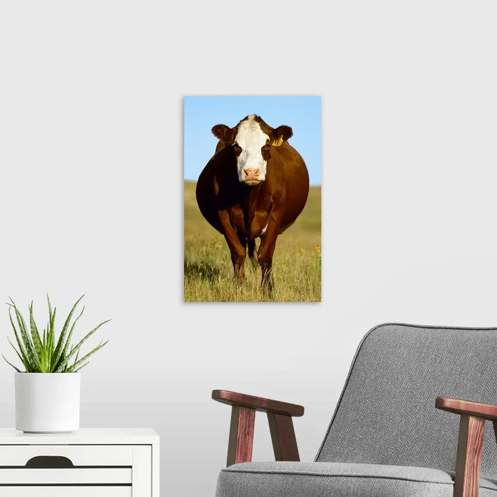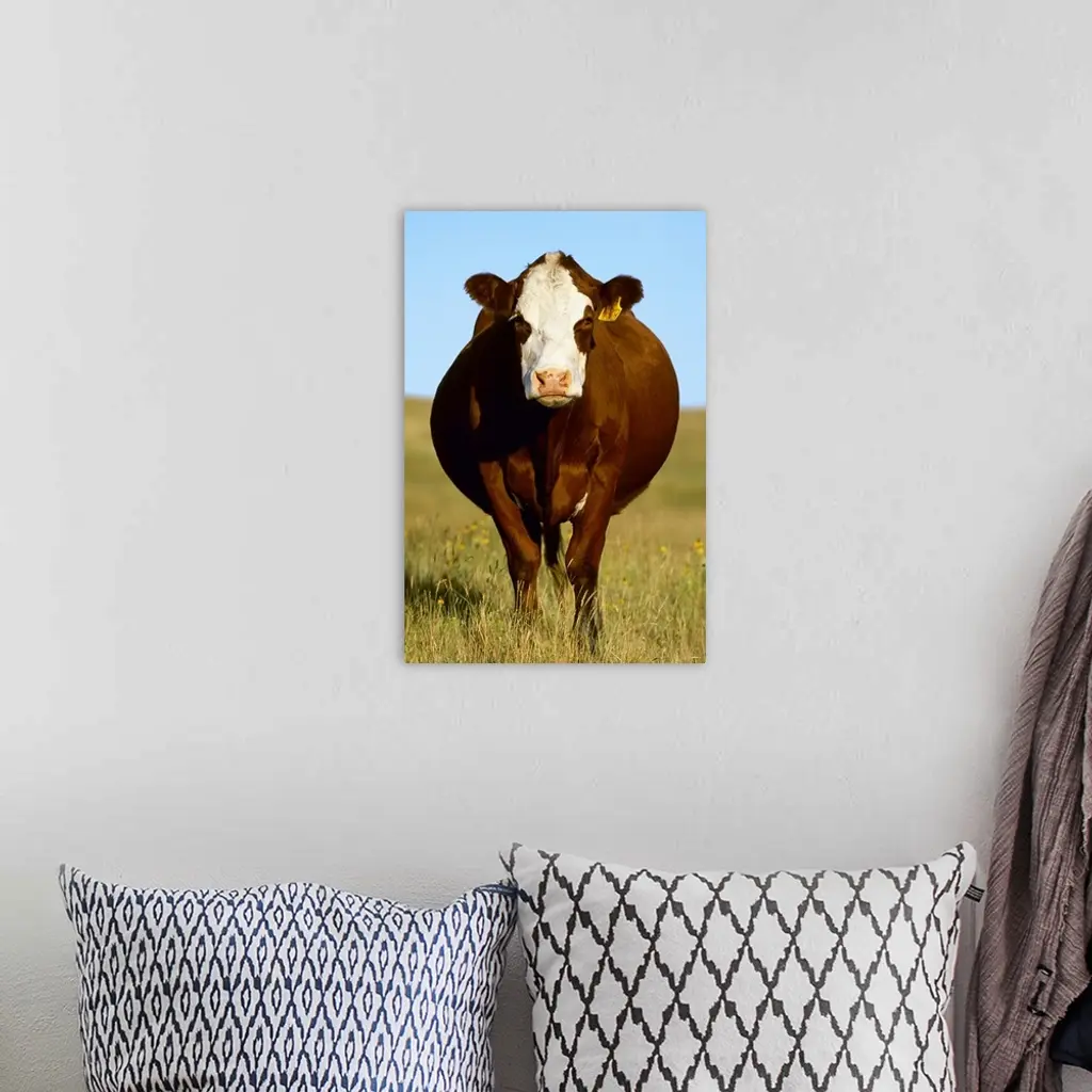 Crossbred cow on a midsummer pasture wall art for home and office decor. Discover canvas art prints, photos, mural, big canvas art and framed wall art in GreatBigCanvas.com's varied collections.