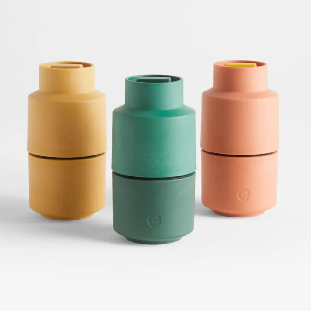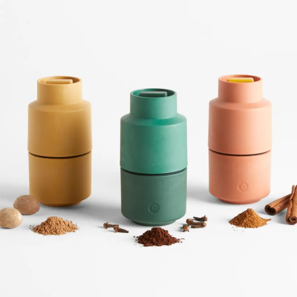 Crafted in a warm terracotta hue made just for us, this spice mill represents Danish design at its best and most functional. The clever upside-down configuration keeps your dining table free of residuejust remove the silicone plug at the bottom to refill with your preferred salt, peppercorns, spices and dried herbs. Made of a wood cellulose-based biocomposite, the grinder has a warm, earthy look and feel. We love keeping a Billund grinder next to the stove for an infusion of seasoning and color.