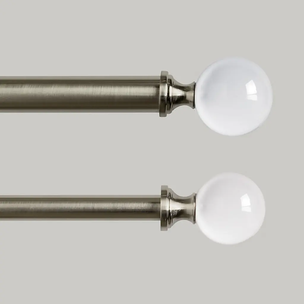 These round, light-filled drapery finials are made of clear solid crystal with turned metal fittings. Two sizes and five finishes are designed to coordinate with our best-selling drapery rods and hardware.