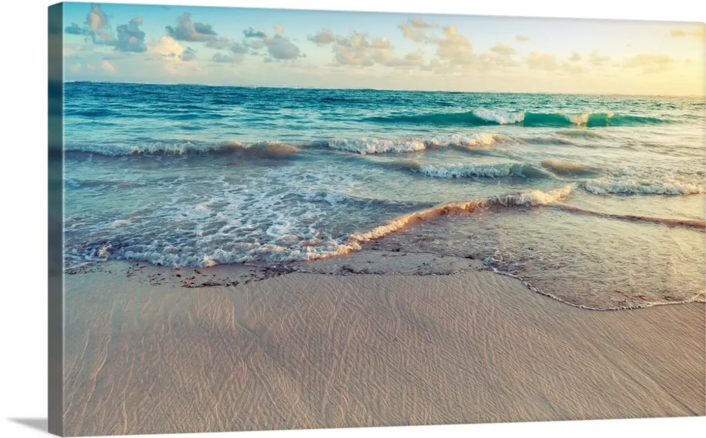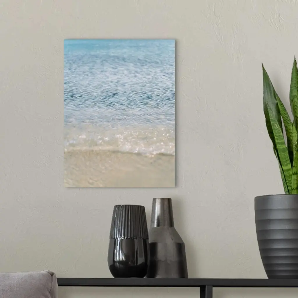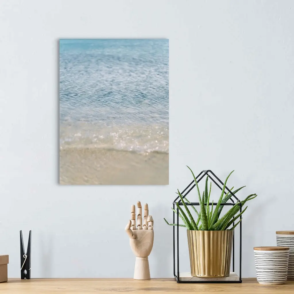 Photograph of clear ocean water lapping the sand, Corfu, Greece.