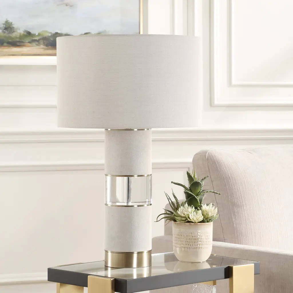 Crystal Table Lamp With Drum Shade - 29" - Beige