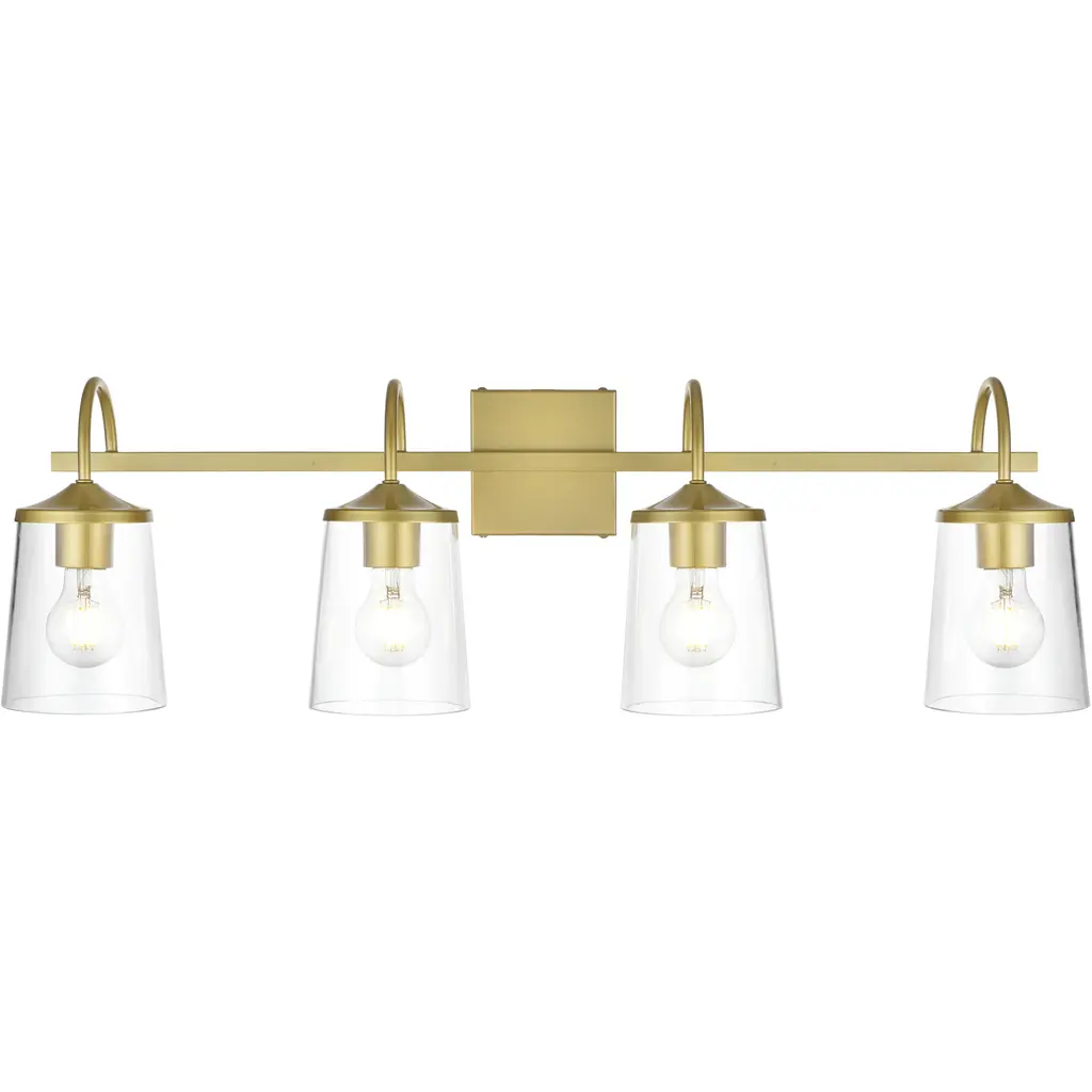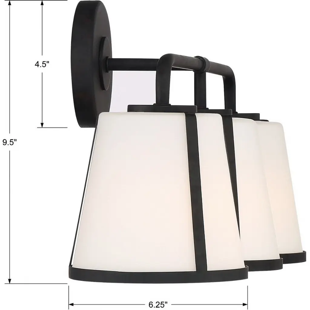 The tailored and versatile Fulton wall sconce has contrasting materials to create an eye-catching display. This fixture features a tapered glass shade that casts illumination downwards, providing bright illumination to your modern bathroom. The white or clear glass is wrapped in a metal ring with tailored lines creating an elegant contrast. Finishes include Polished Nickel, Antique Gold, and Matte Black. Fulton collection features a versatile modern / contemporary design. / A relaxed blend of rustic charm and modern comfort, featuring natural textures, neutral tones, and vintage-inspired accents. / Horizontally or vertically mountable. / Polished Nickel metal finish, perfect for modern & contemporary settings. / 23.25"W x 9.25"H x 7.5"D / 3 light 100- watt, E26 Medium base / Steel + Glass / Authorized for use in damp, high-humidity interior locations or protected exterior locations. Meets United States UL Underwriters Laboratories Product Safety Standards / The Fulton shade creates a