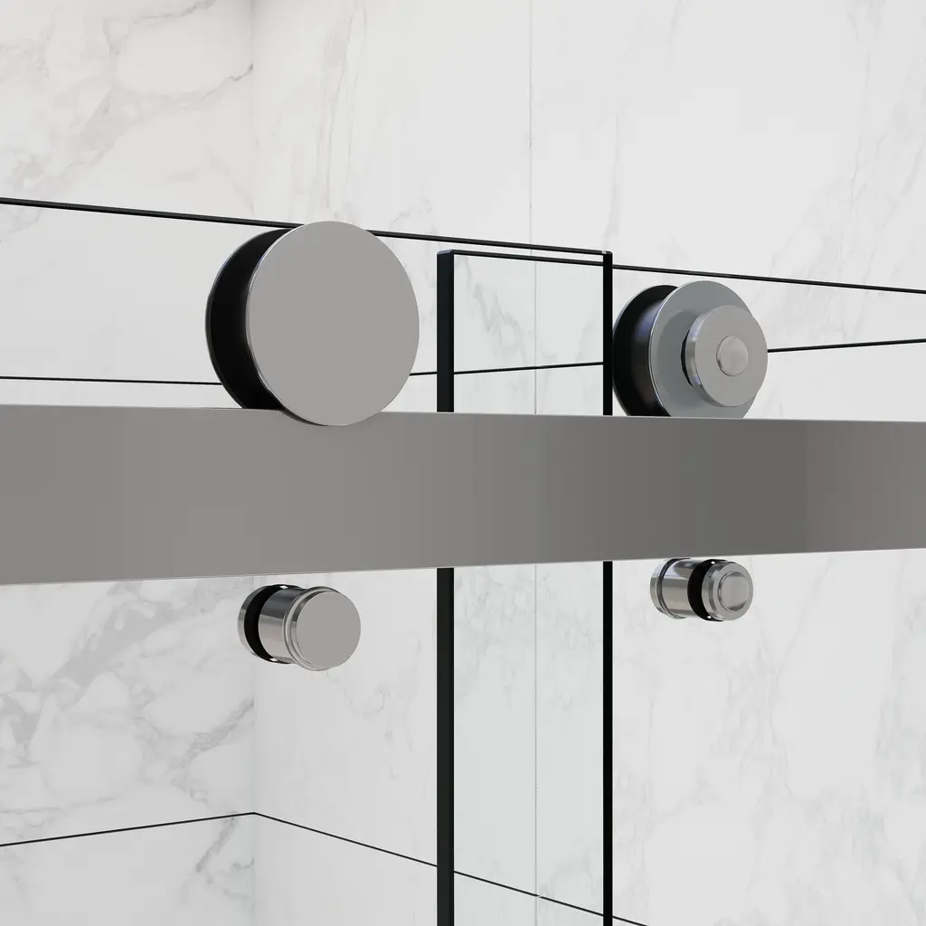 Innovative Water-Tight and Code-Compliant Design: The CS Series elevates shower door design with a sleek, frameless aesthetic paired with exceptional stability. Its hybrid structure ensures durability and enhanced waterproofing, making it an excellent solution for any bathroom. Additionally, our shower doors meet strict California building codes, featuring an internal glass knob that guarantees compliance with building inspections.Easy Installation and Premium Materials for Long-Lasting Quality: Designed for ease of installation, the CS Series allows for convenient DIY setups, saving both time and money. Crafted with high-quality metals, the rails are built to withstand the weight of the shower doors over time. Our semi-frameless design breaks away from traditional styles, embracing a youthful and contemporary look that appeals to modern tastes.