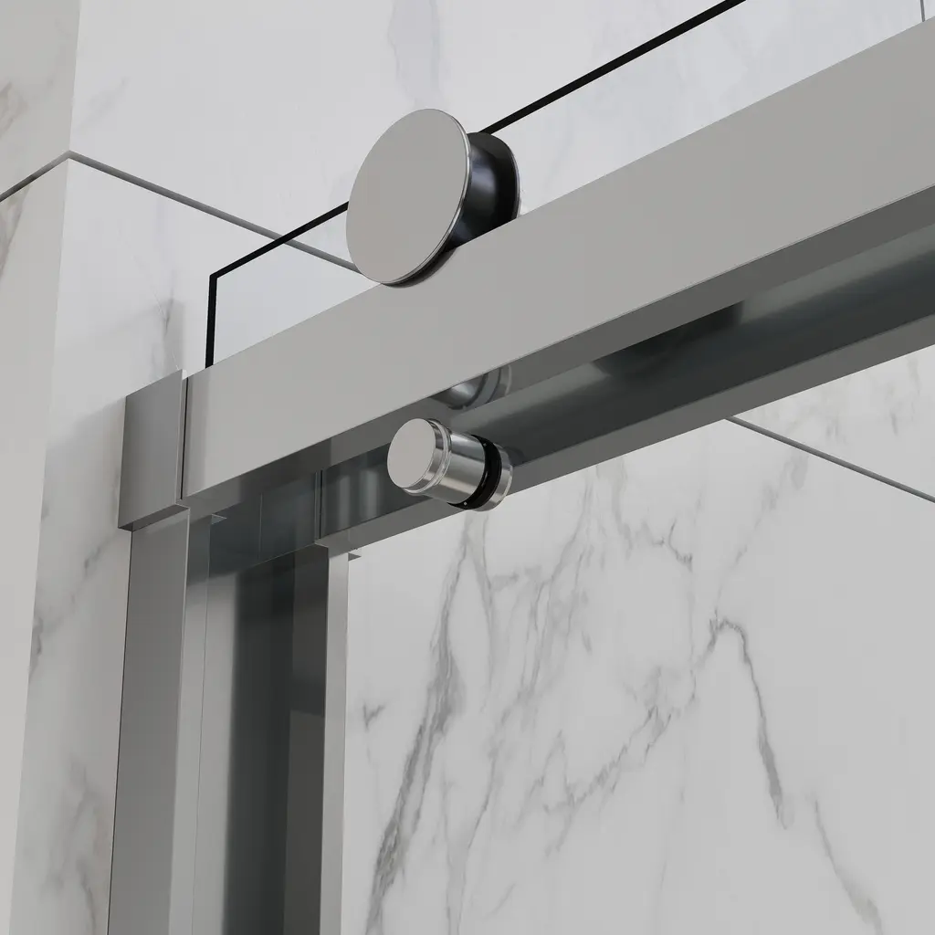Innovative Water-Tight and Code-Compliant Design: The CS Series elevates shower door design with a sleek, frameless aesthetic paired with exceptional stability. Its hybrid structure ensures durability and enhanced waterproofing, making it an excellent solution for any bathroom. Additionally, our shower doors meet strict California building codes, featuring an internal glass knob that guarantees compliance with building inspections.Easy Installation and Premium Materials for Long-Lasting Quality: Designed for ease of installation, the CS Series allows for convenient DIY setups, saving both time and money. Crafted with high-quality metals, the rails are built to withstand the weight of the shower doors over time. Our semi-frameless design breaks away from traditional styles, embracing a youthful and contemporary look that appeals to modern tastes
