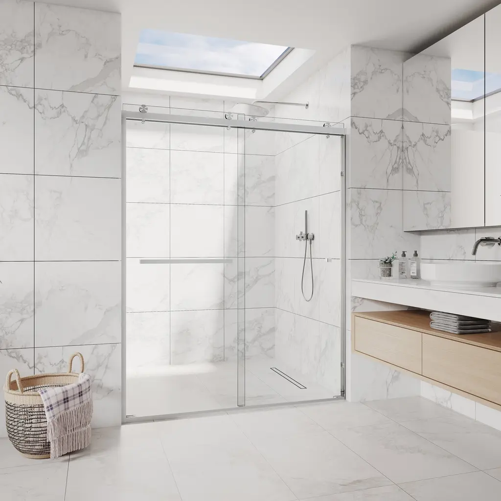 Innovative Water-Tight and Code-Compliant Design: The CS Series elevates shower door design with a sleek, frameless aesthetic paired with exceptional stability. Its hybrid structure ensures durability and enhanced waterproofing, making it an excellent solution for any bathroom. Additionally, our shower doors meet strict California building codes, featuring an internal glass knob that guarantees compliance with building inspections.Easy Installation and Premium Materials for Long-Lasting Quality: Designed for ease of installation, the CS Series allows for convenient DIY setups, saving both time and money. Crafted with high-quality metals, the rails are built to withstand the weight of the shower doors over time. Our semi-frameless design breaks away from traditional styles, embracing a youthful and contemporary look that appeals to modern tastes