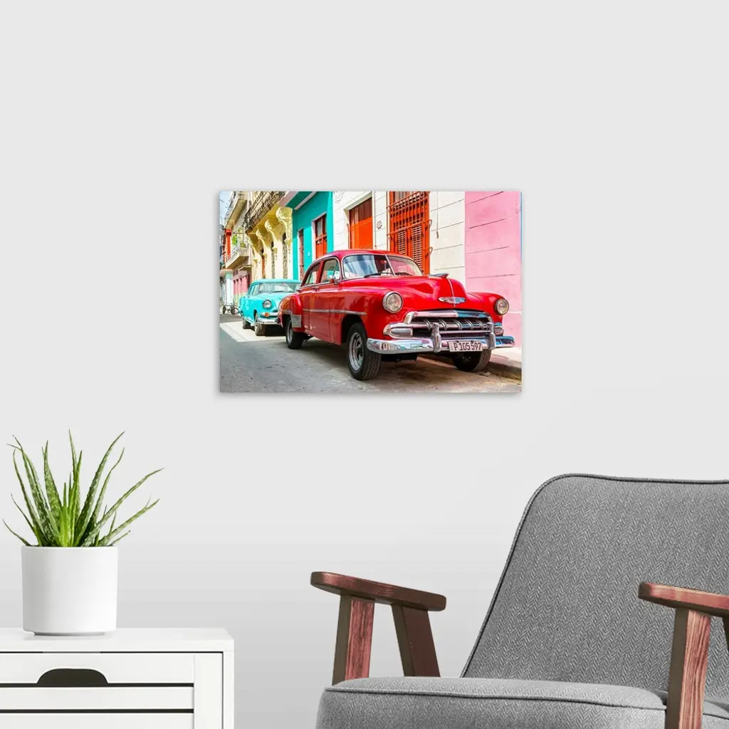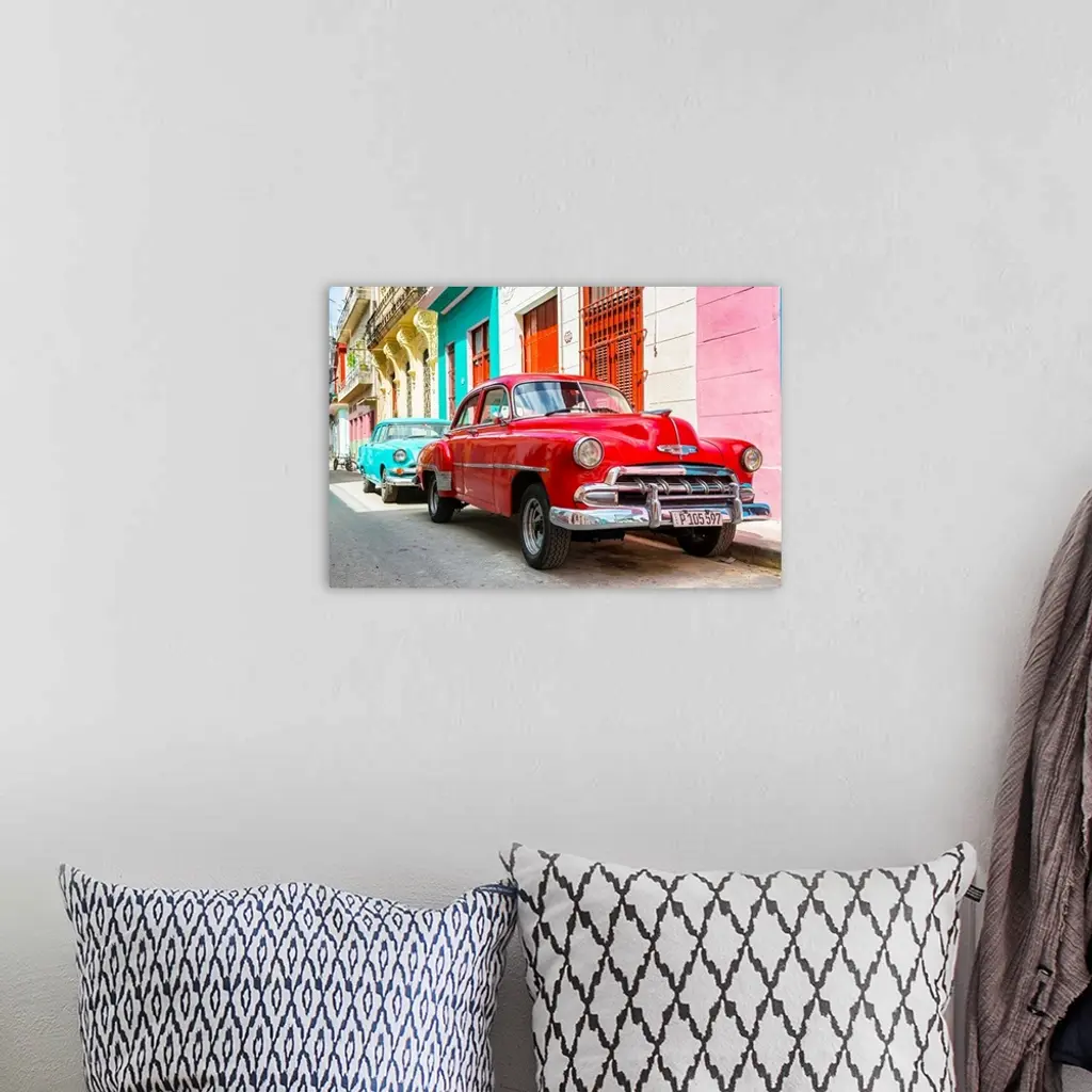 Cuba Fuerte Collection - Two Chevrolet Cars Red And Turquoise