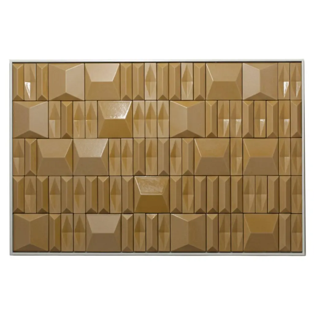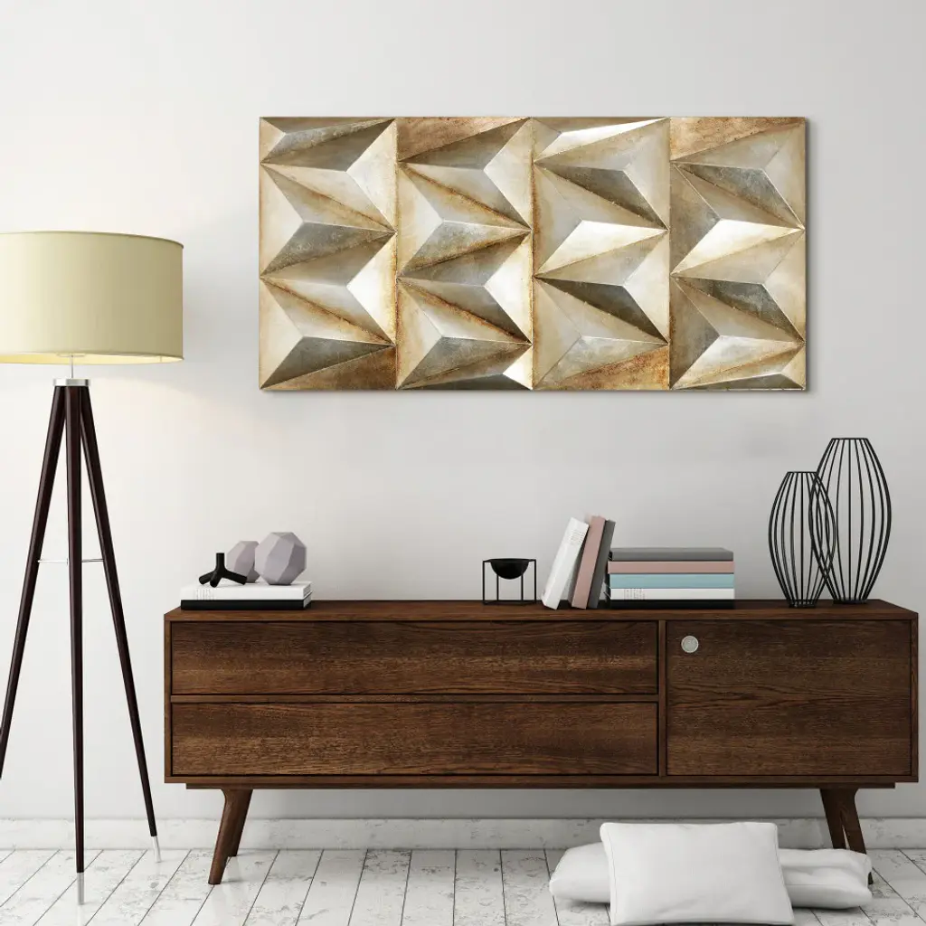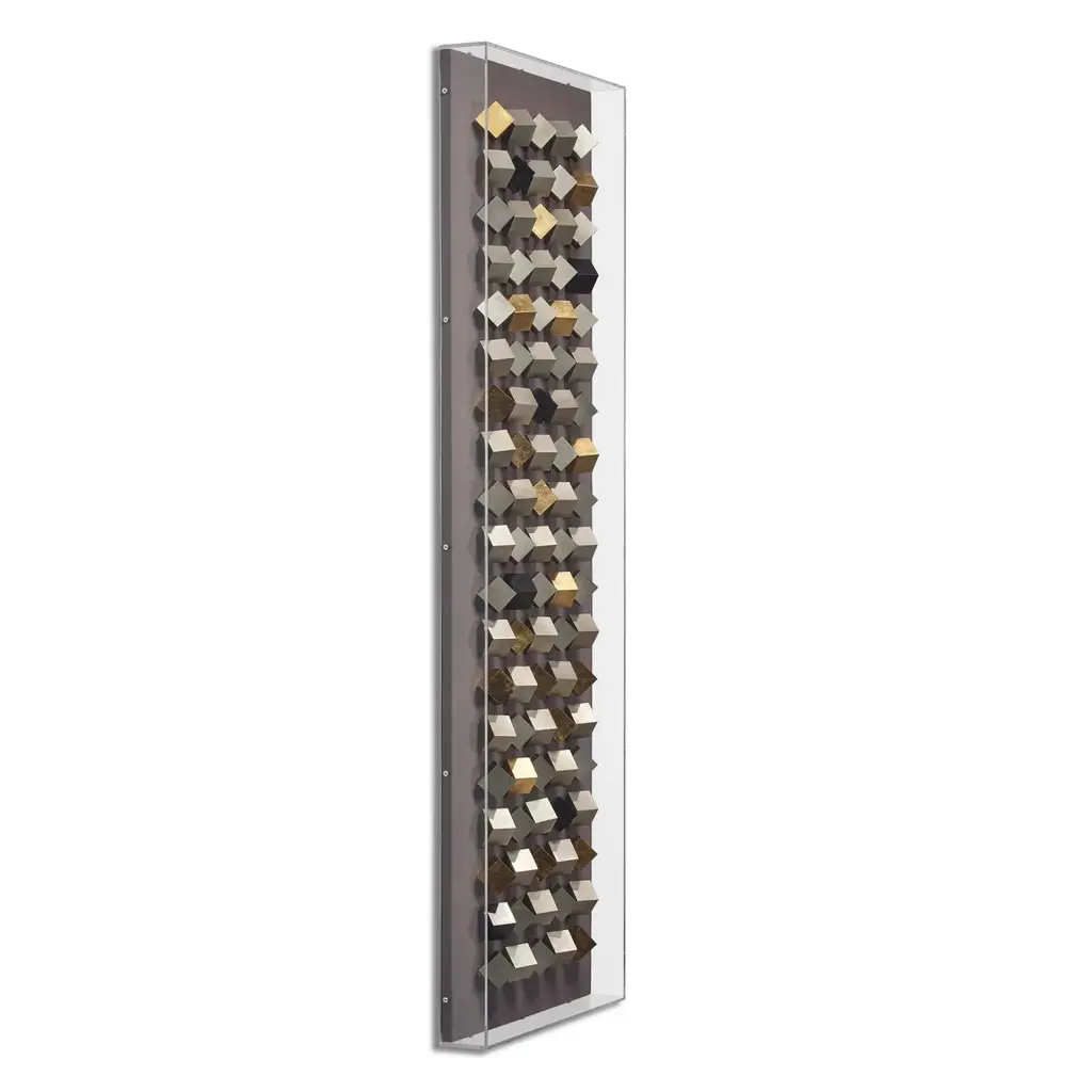 It's your one way ticket to midnight...call it heavy metal!" Set in a shadowbox frame, this work makes an immediate impact on the wall with its cubic, dimensional design and tri-tone metallic finish.Shadowbox.Set to hang vertically or horizontally.