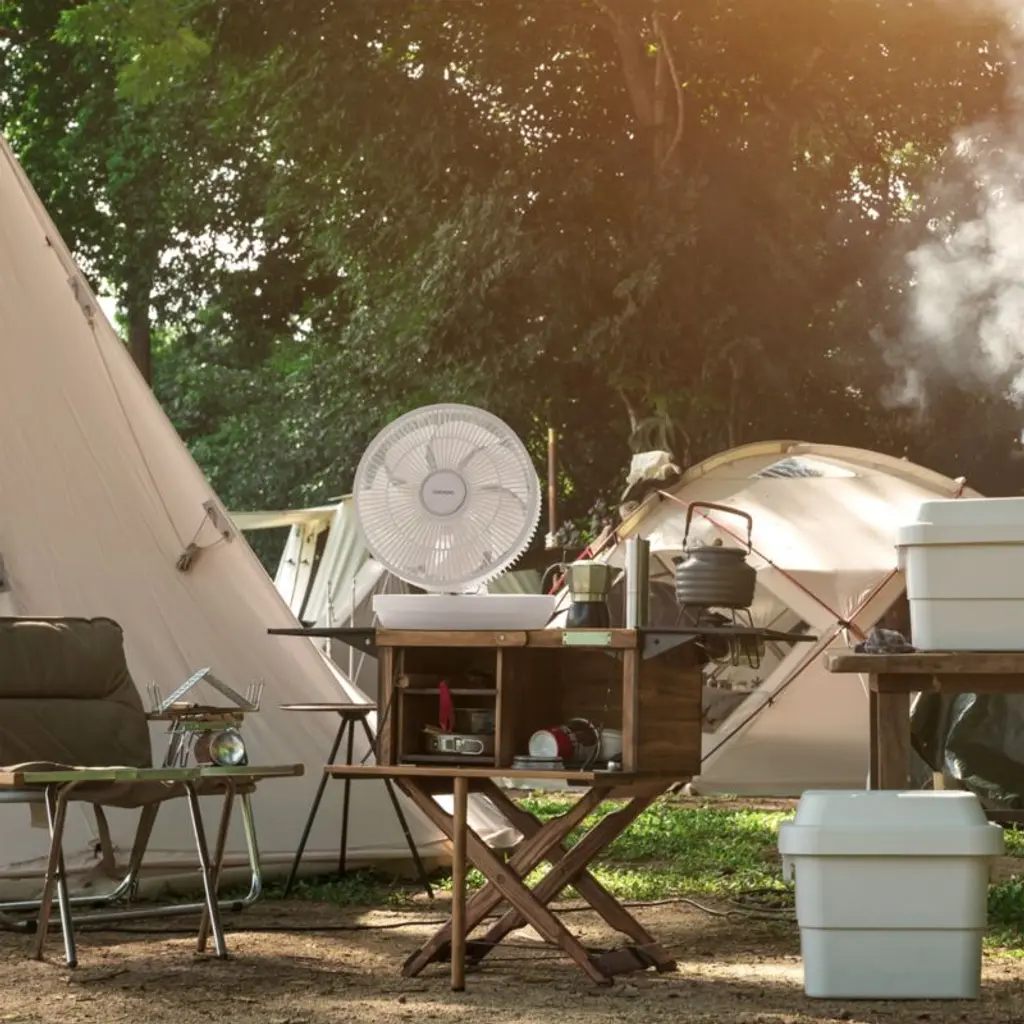 Cool off anywhere with this two-in-one fan that multitasks as a table or floor fan, corded or cordless. Boasting seven blades, the air circulator cools quietly wherever you need a refreshing breezejust fold up the fan, zip it into the carrying bag and go. The 12-speed fan runs for up to 30 hours on a single charge, and the remote control offers effortless operation.